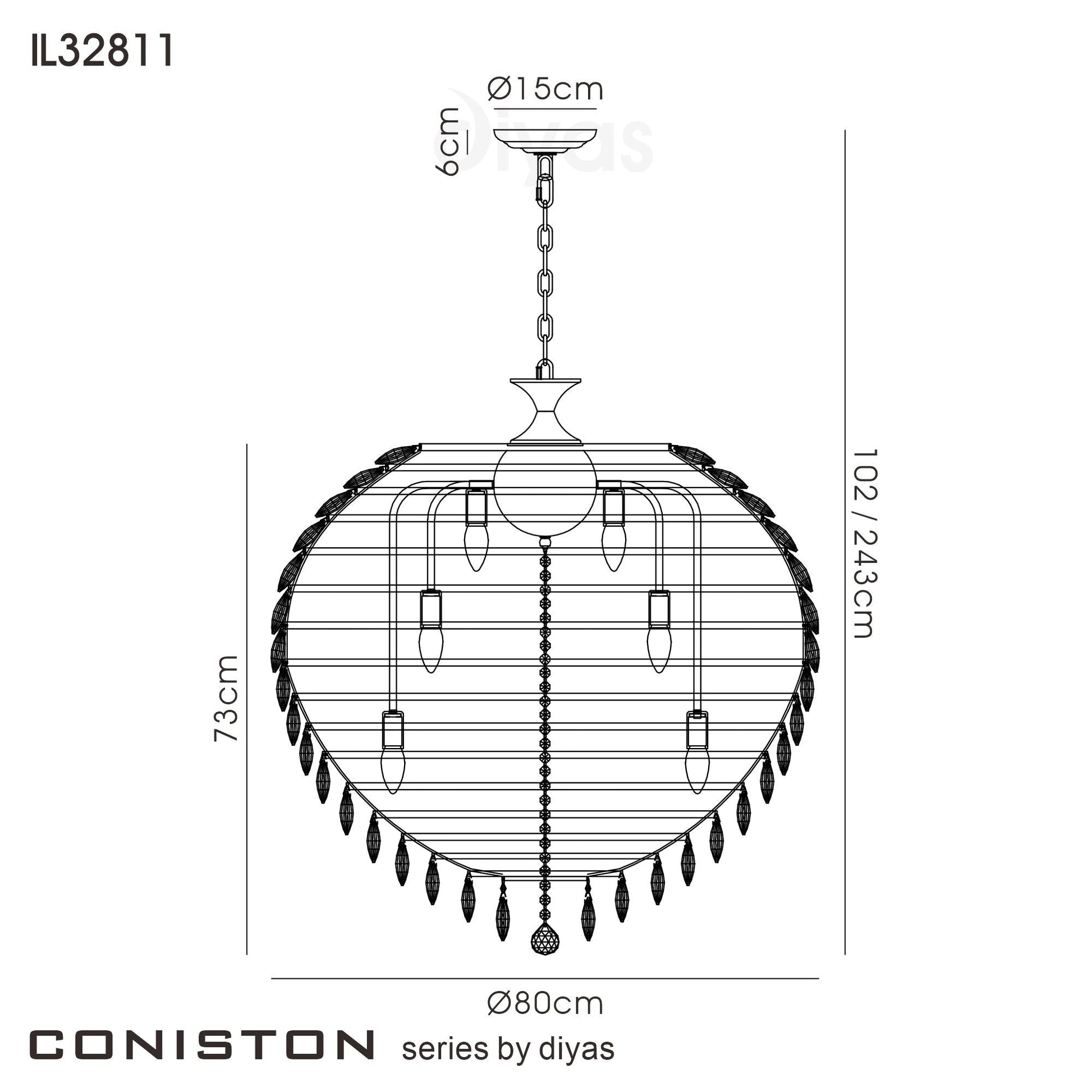 Eaton Pendant 12 Light E14 Metal and Glass Lantern (Diyas il31095/il31085) -