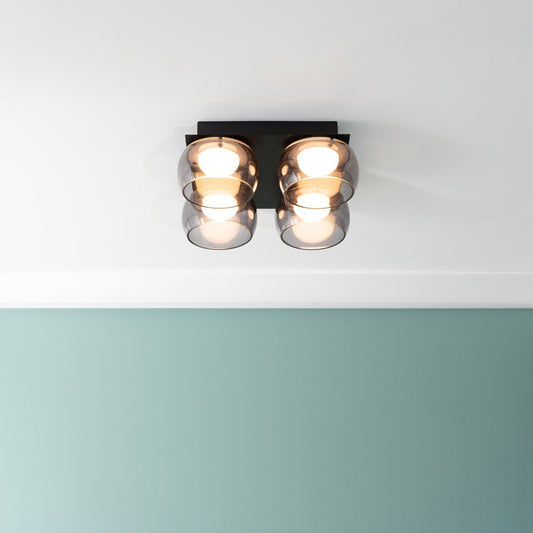 Alissa IP44 Bathroom Rated LED Square 4 Light Flush Ceiling Fitting with Glass Shades -
