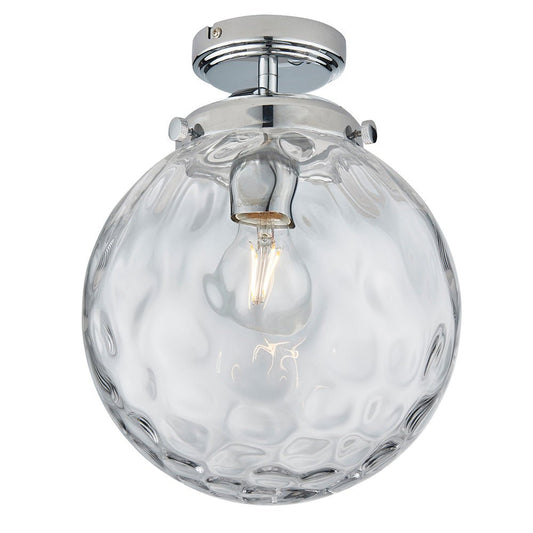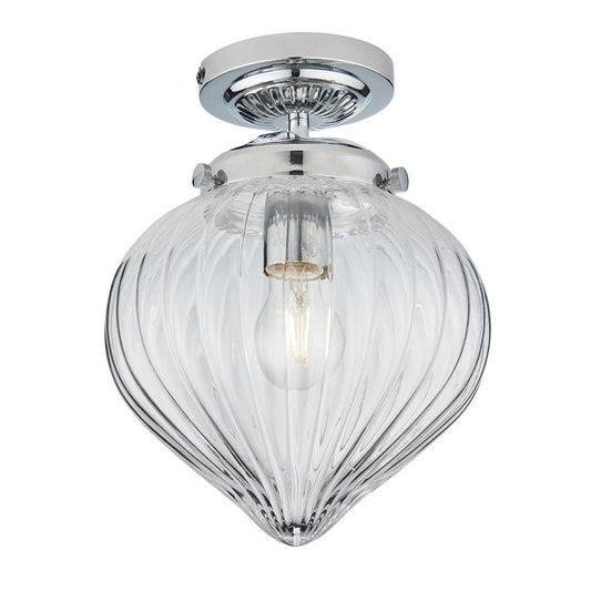Cheston Flush Chrome and Glass Vintage Period Style Glass Lantern IP Rated Bathroom Fitting, 1x E27 (Endon 96489) -