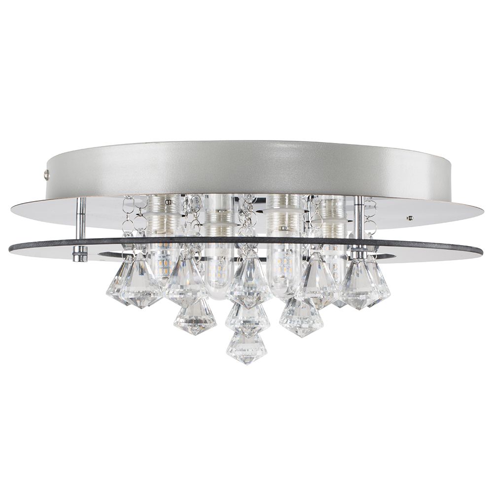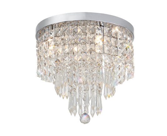 Lyric 31cm Flush Ceiling Light, 4 x G9, IP44, Polished Chrome/Crystal -