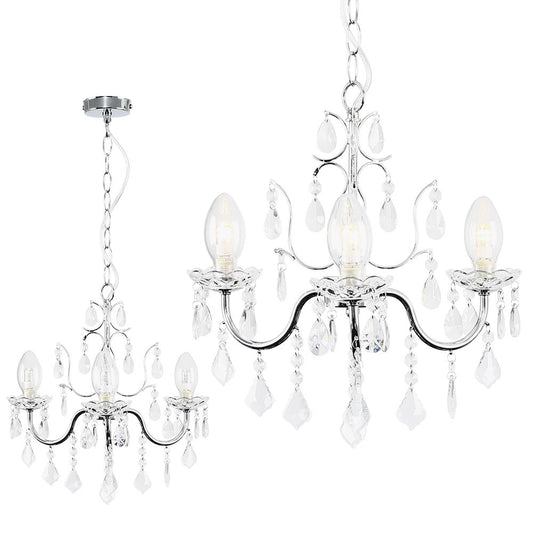 Varuna IP44 Bathroom Rated Acrylic and Glass 3 Light Chandelier -