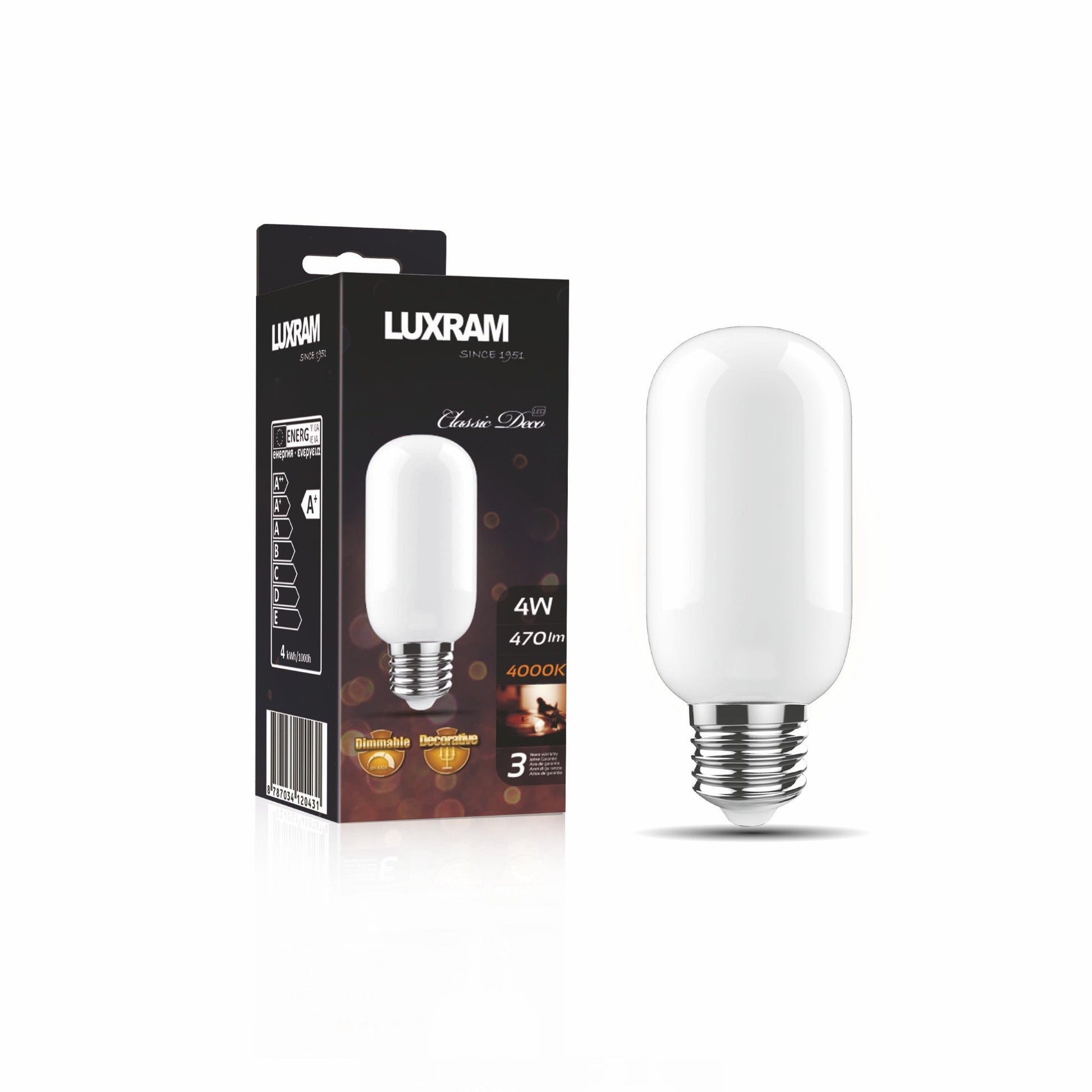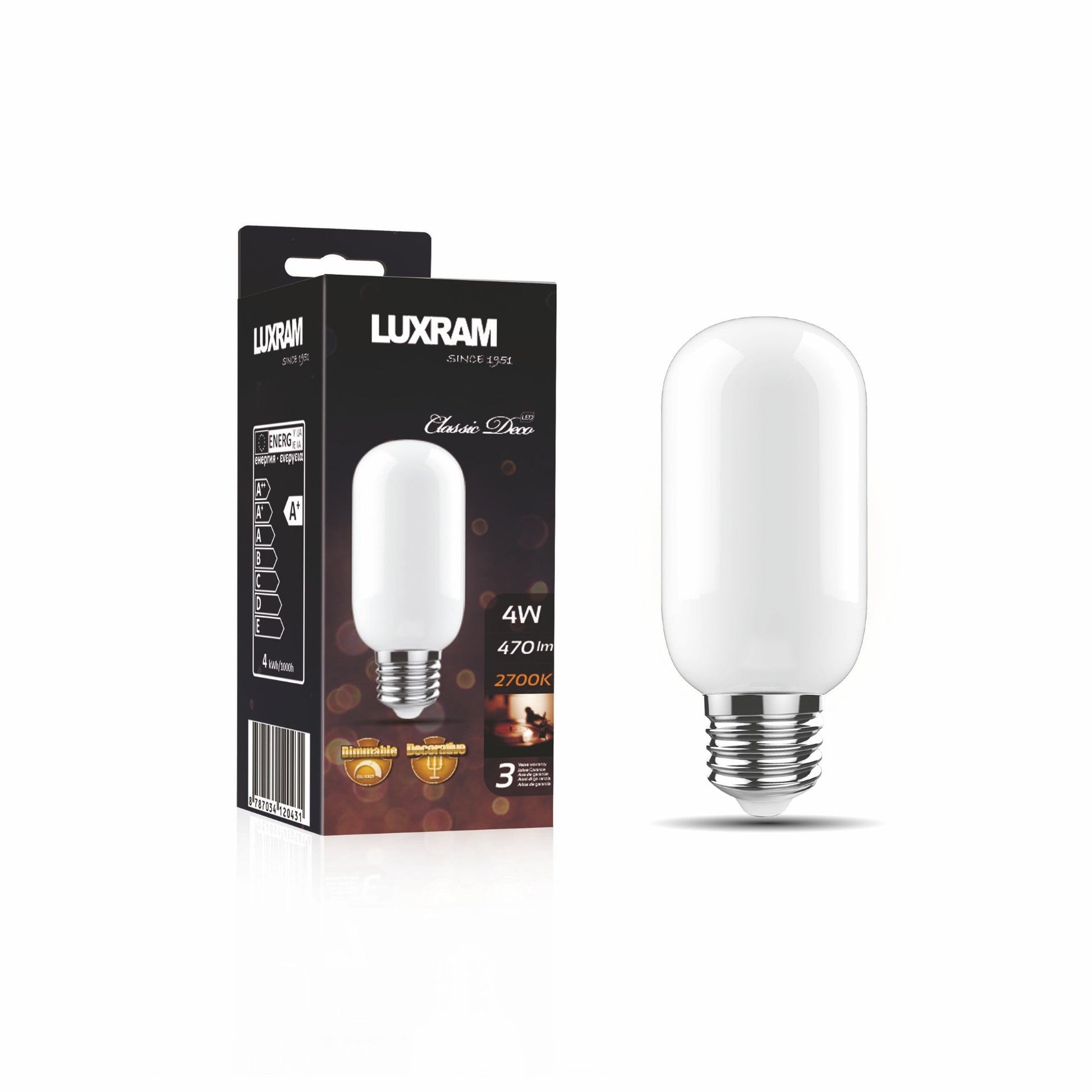 Luxram Candle Tip E14, 4W, Warm White 2700K, 470lm, Value Classic LED -