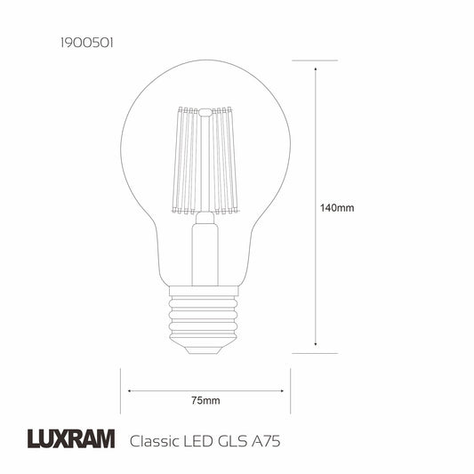 Luxram Extra Bright Dimmable LED GLS Filament Bulb - 12w -