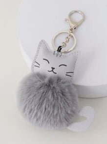 Gold Kitten Pearl Pompom Bag Charm / Keyring