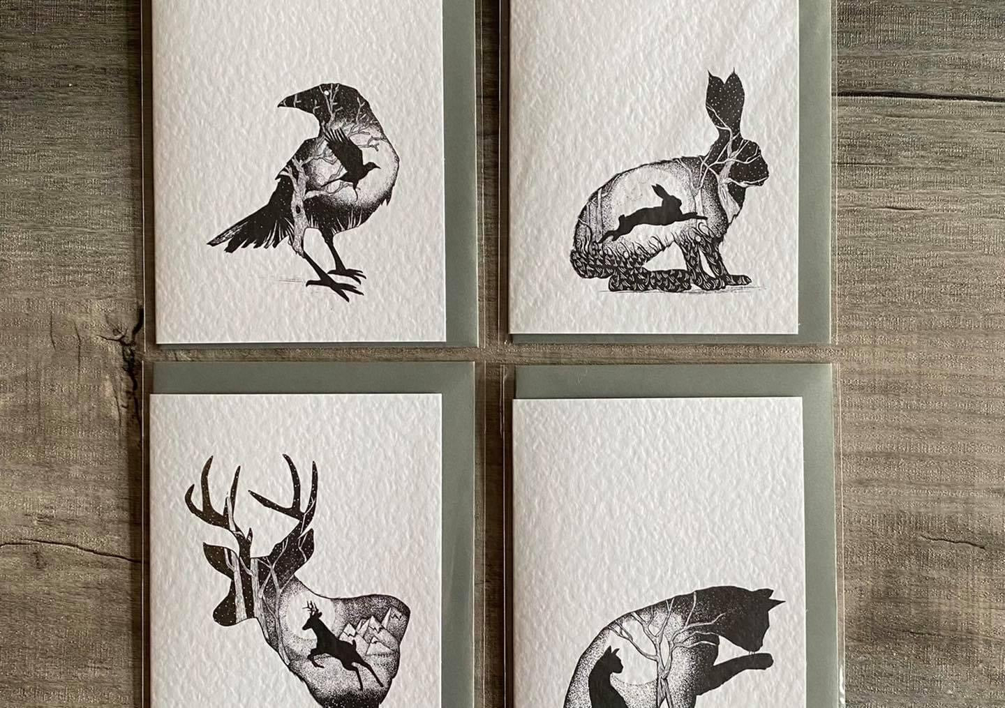 Animal Silhouette Cards by DP Art - 4 Designs -