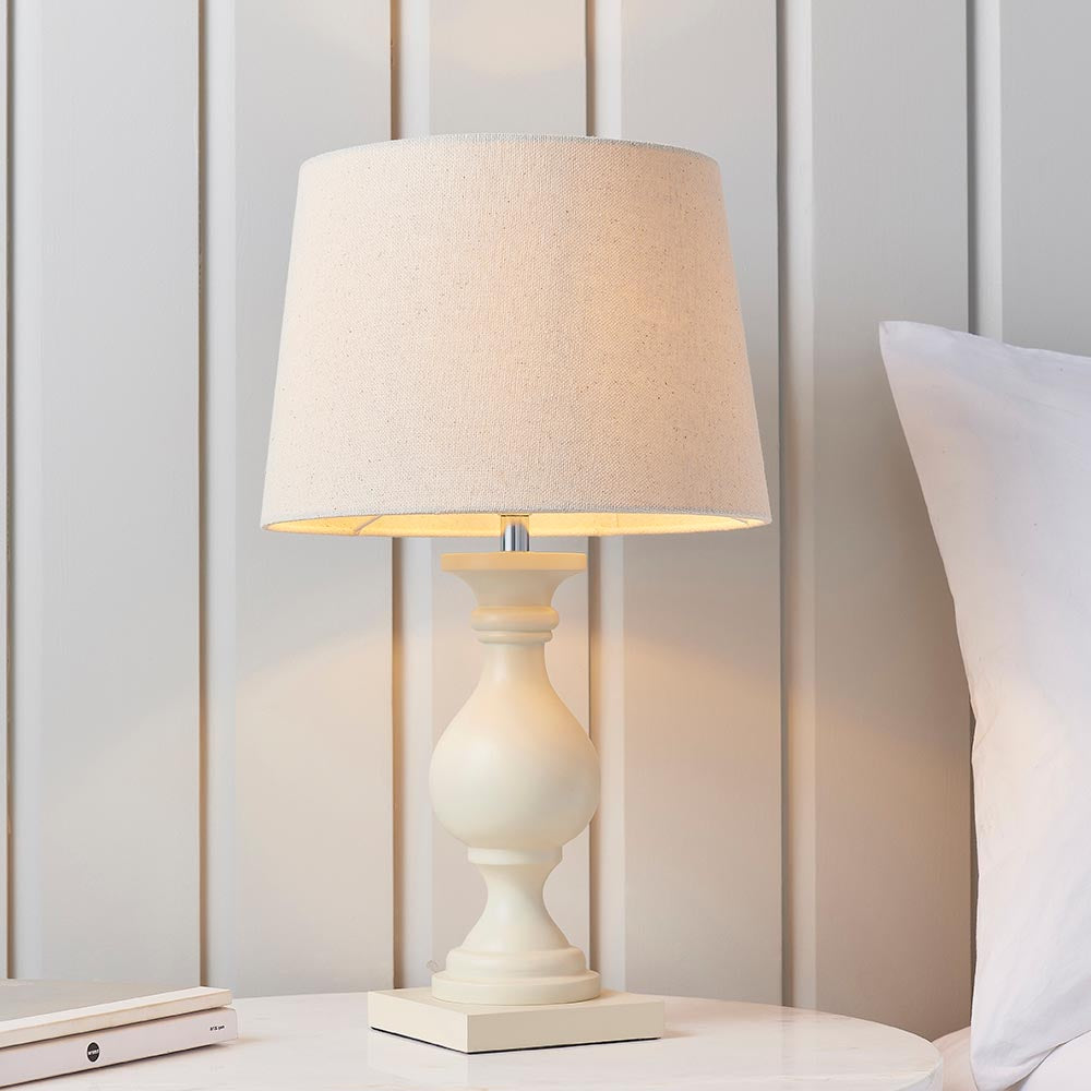 Francis Touch Table Lamp With Black Base and Cotton Shade, 1X E14 -