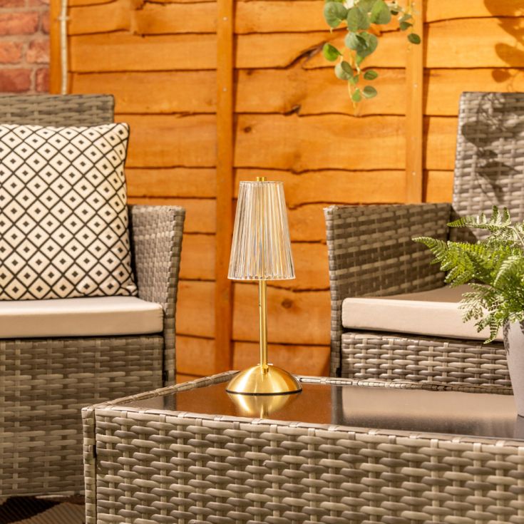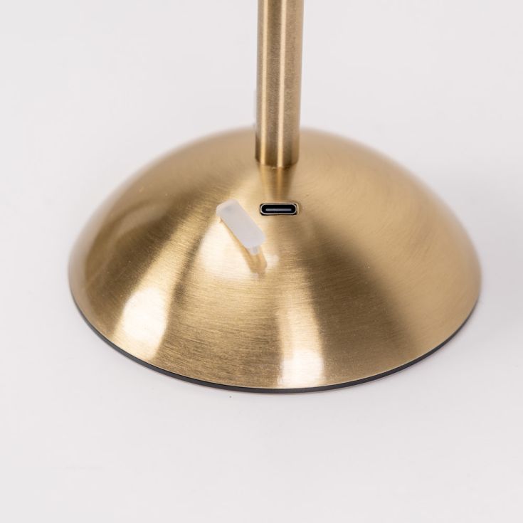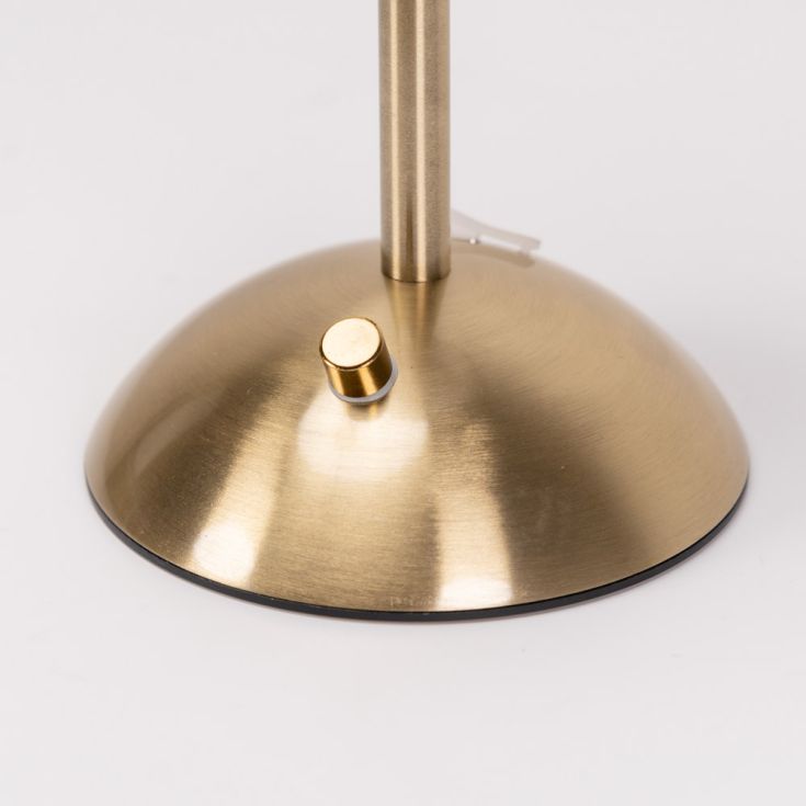 Lowe Rechargeable LED Table Lamp in Antique Brass With Natural White Cotton Shade. -