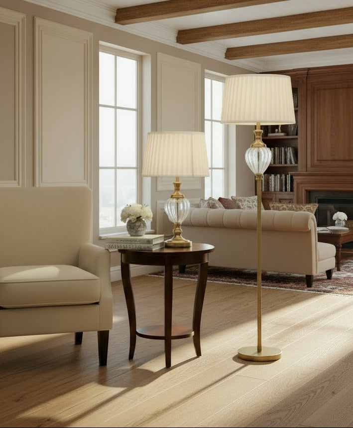 Edmunton Artisan Clear Glass Table Lamp Complete With Shade, 1x E27 -
