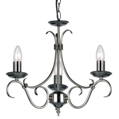 Flur Gothic Style Chandelier Pendant, 3 Light E14 Candle With Silk String Shades (Diyas IL40023 / IL40013 ) -