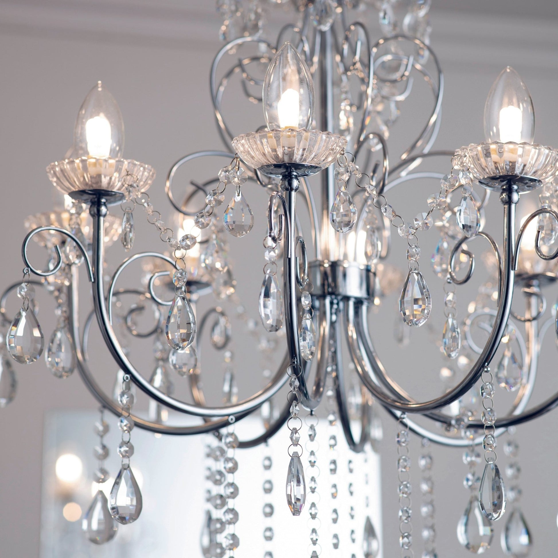 Wren 5 Light Crystal and Plated Chandelier in Chrome. 5x E14 (Oaks7352) -