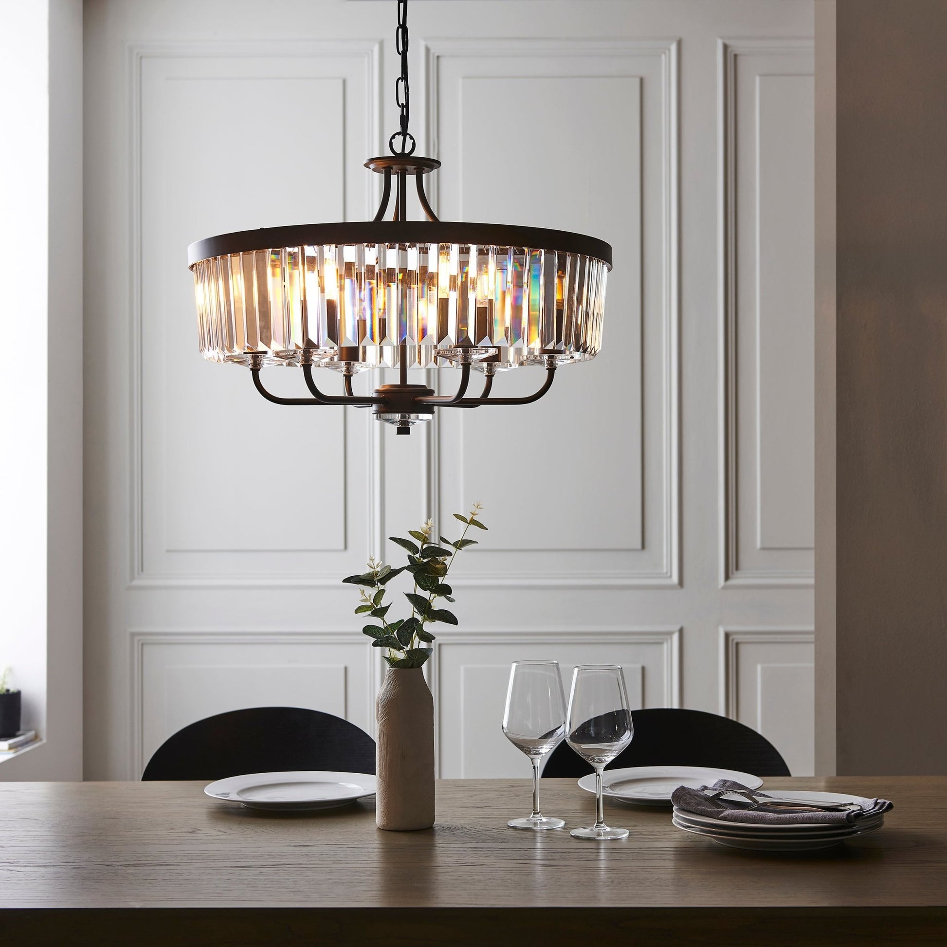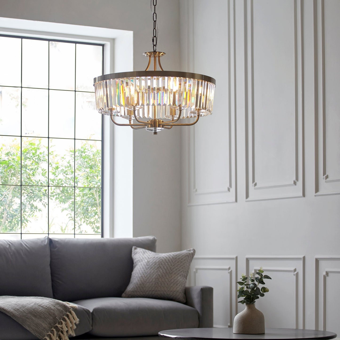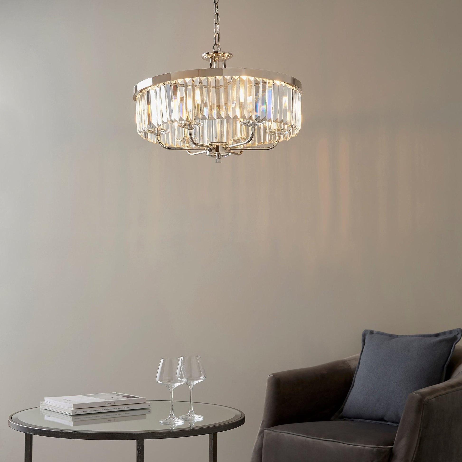 The Paris is a stylish but clean cut glass chandelier with clean lines.