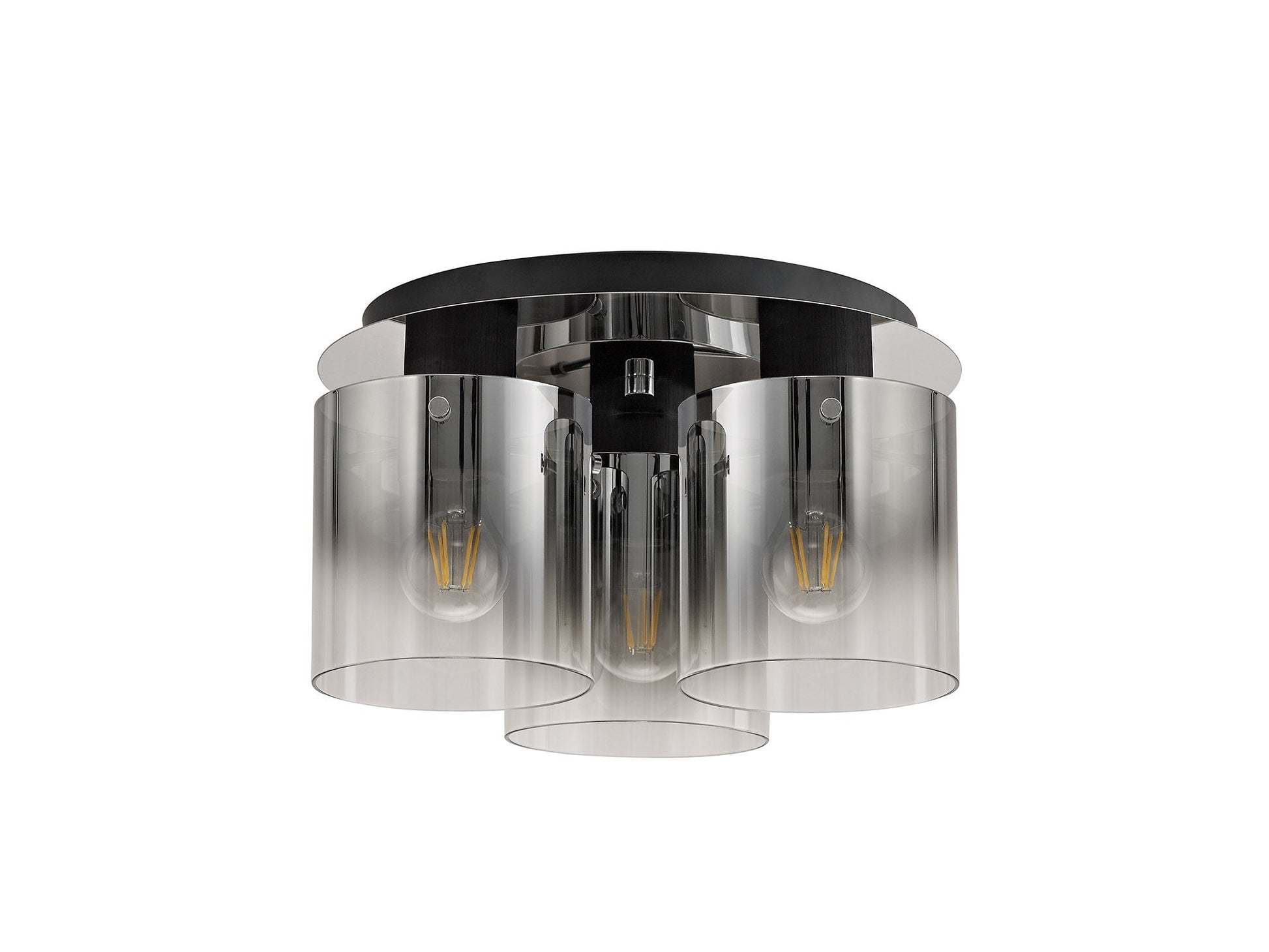 Its sleek matt black fitting is complimented perfectly by the smoke glass that fades to a chrome coating.