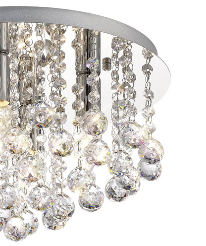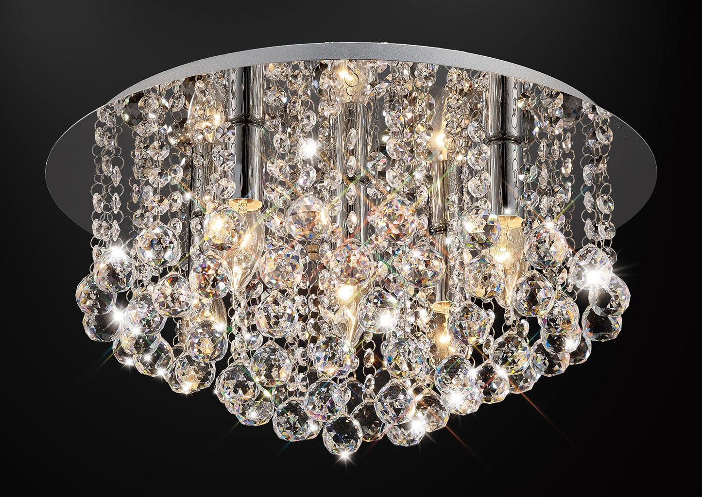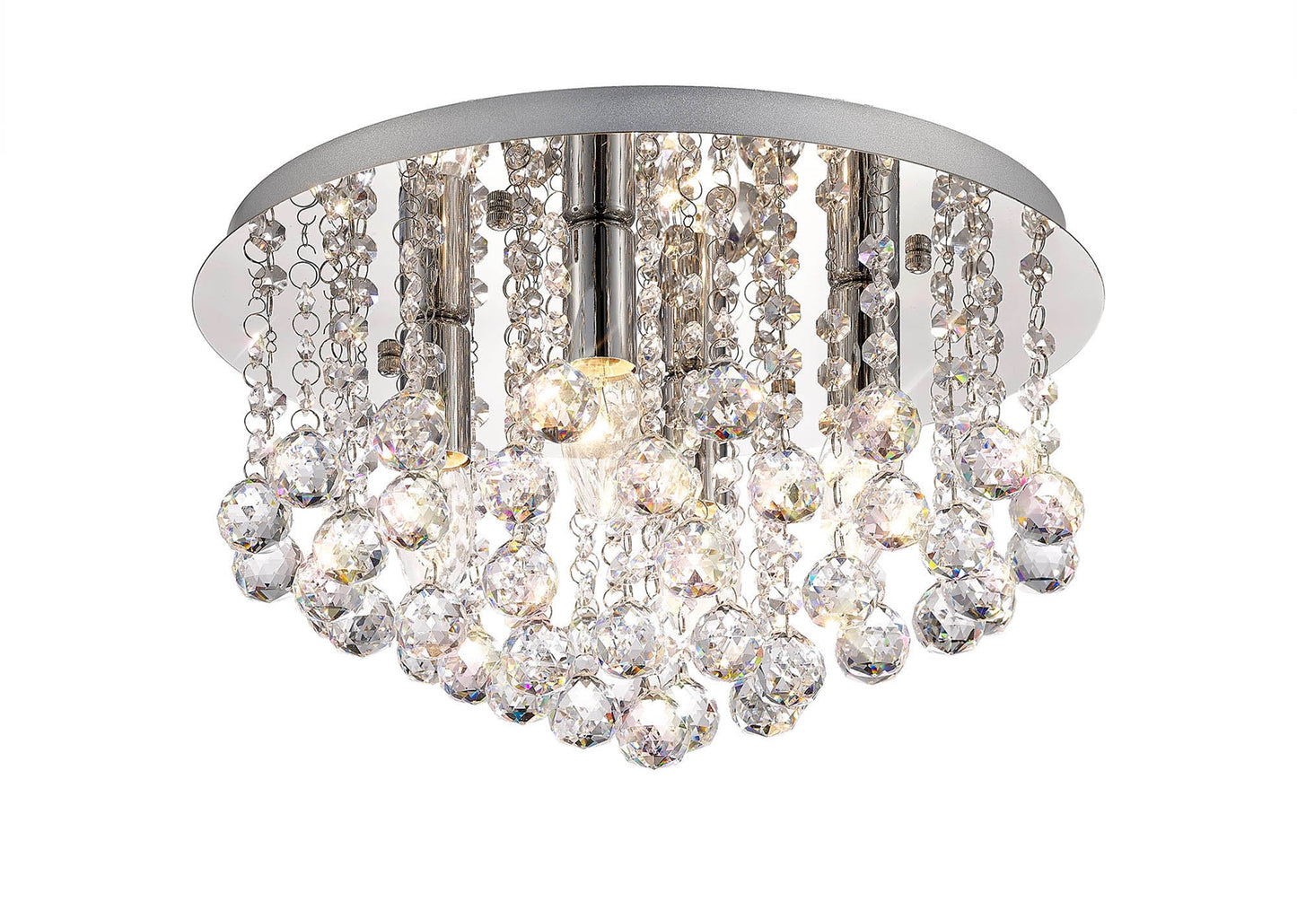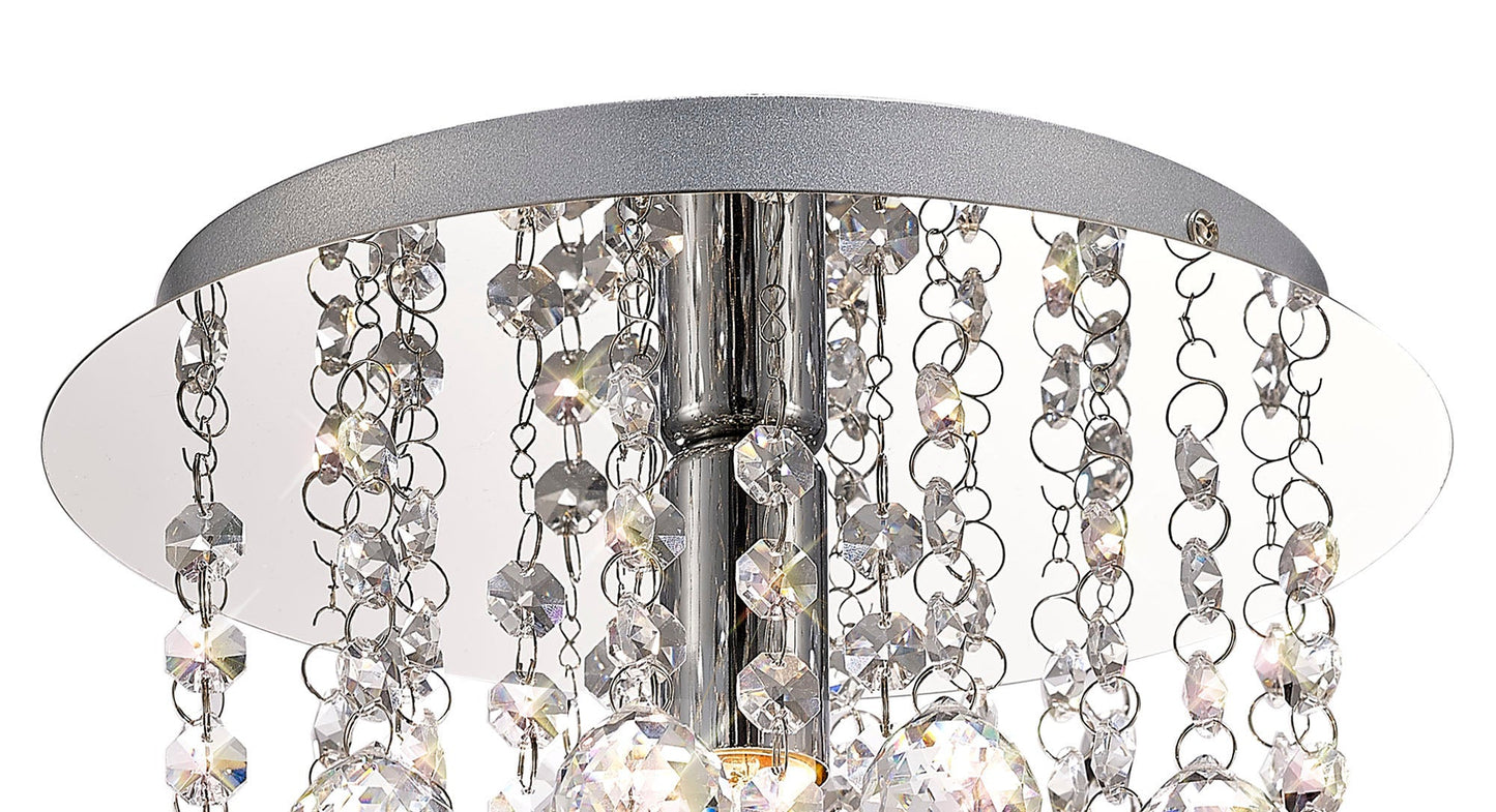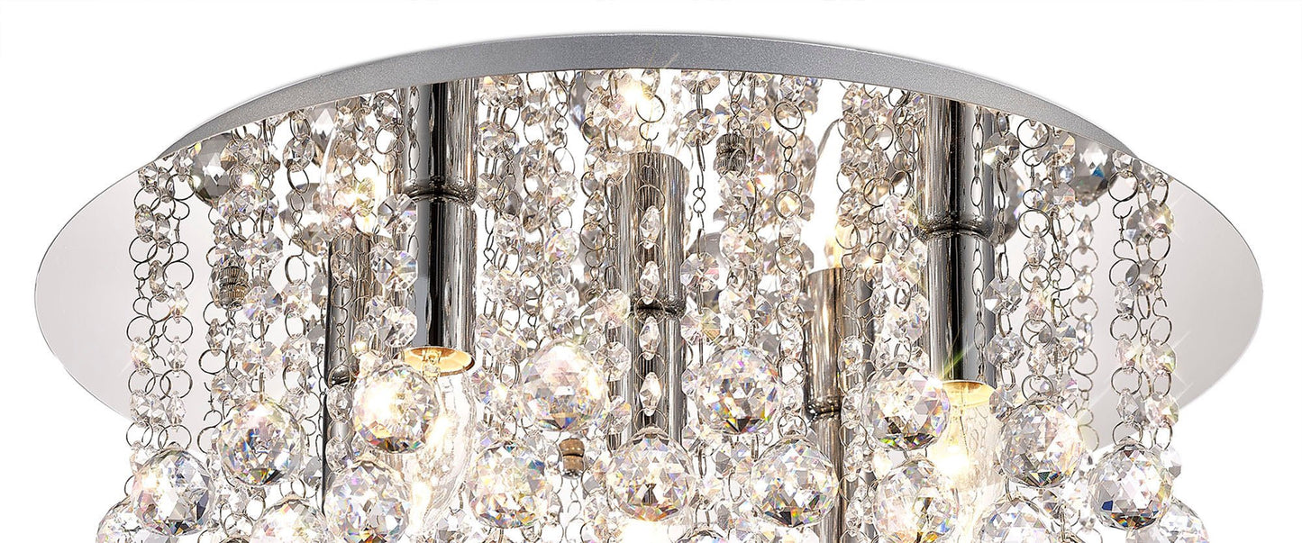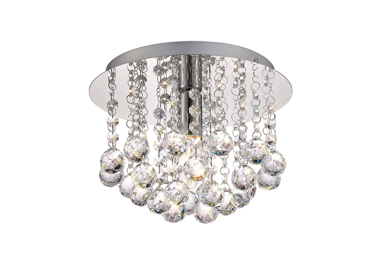 Acton is a classically stunning range of flush ceiling lights and complementary wall lamps, enabling the consumer to add sparkle and class to any low ceiling room. The round and square polished chrome frames are each available in 3 different sizes and use crystal components to compliment the shape of the ceiling plate.