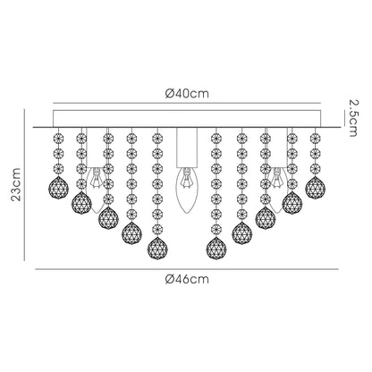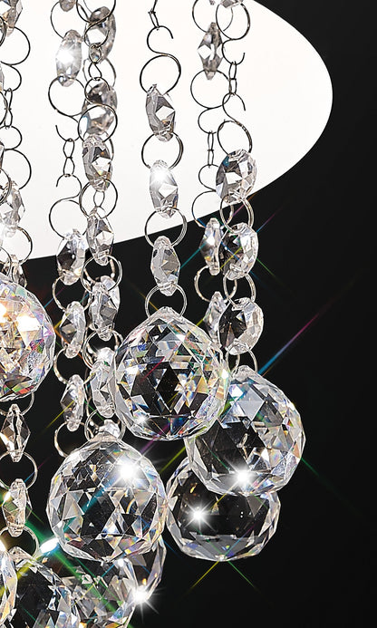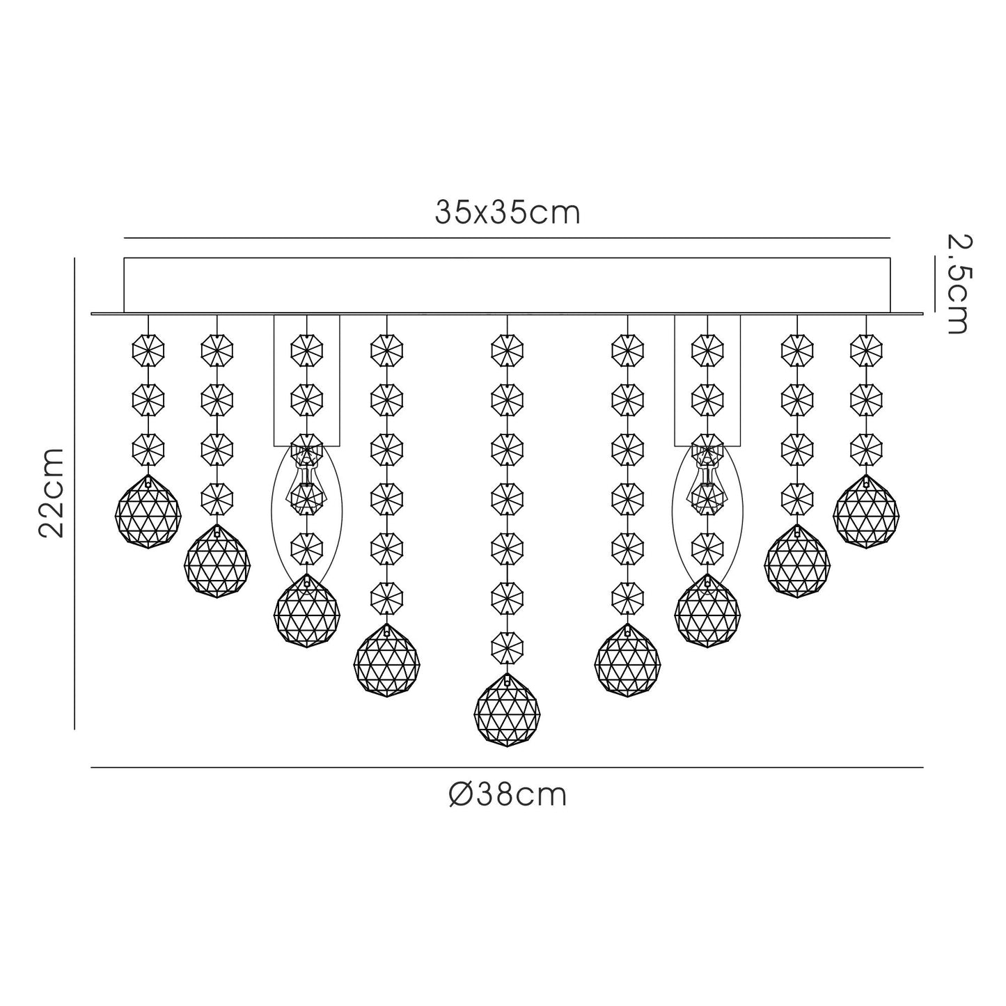The round frame hangs strands of clear crystal buttons with a crystal sphere drop whilst the square frames swap the spheres for the more appopriate clear crystal prisms. Both designs are available in a 1, 4 and 5 light using E14 lampholders that take maximum 60W lamps.