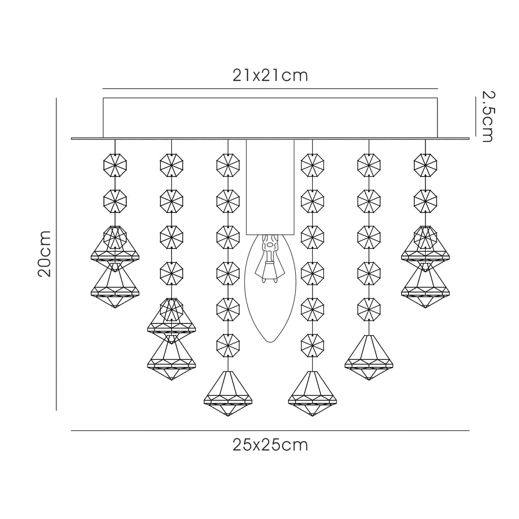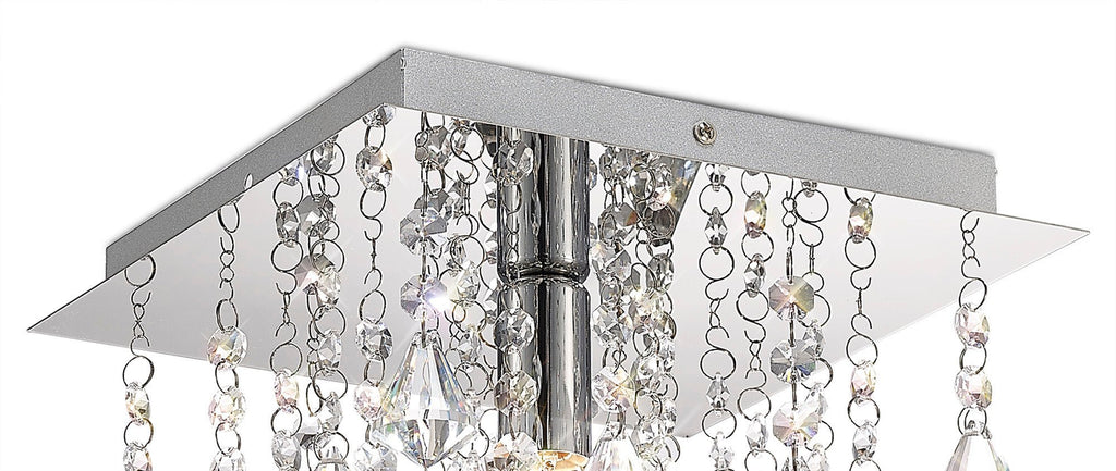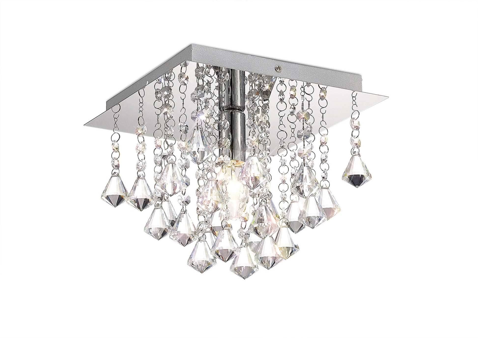 Acton is a classically stunning range of flush ceiling lights and complementary wall lamps, enabling the consumer to add sparkle and class to any low ceiling room. The round and square polished chrome frames are each available in 3 different sizes and use crystal components to compliment the shape of the ceiling plate.
