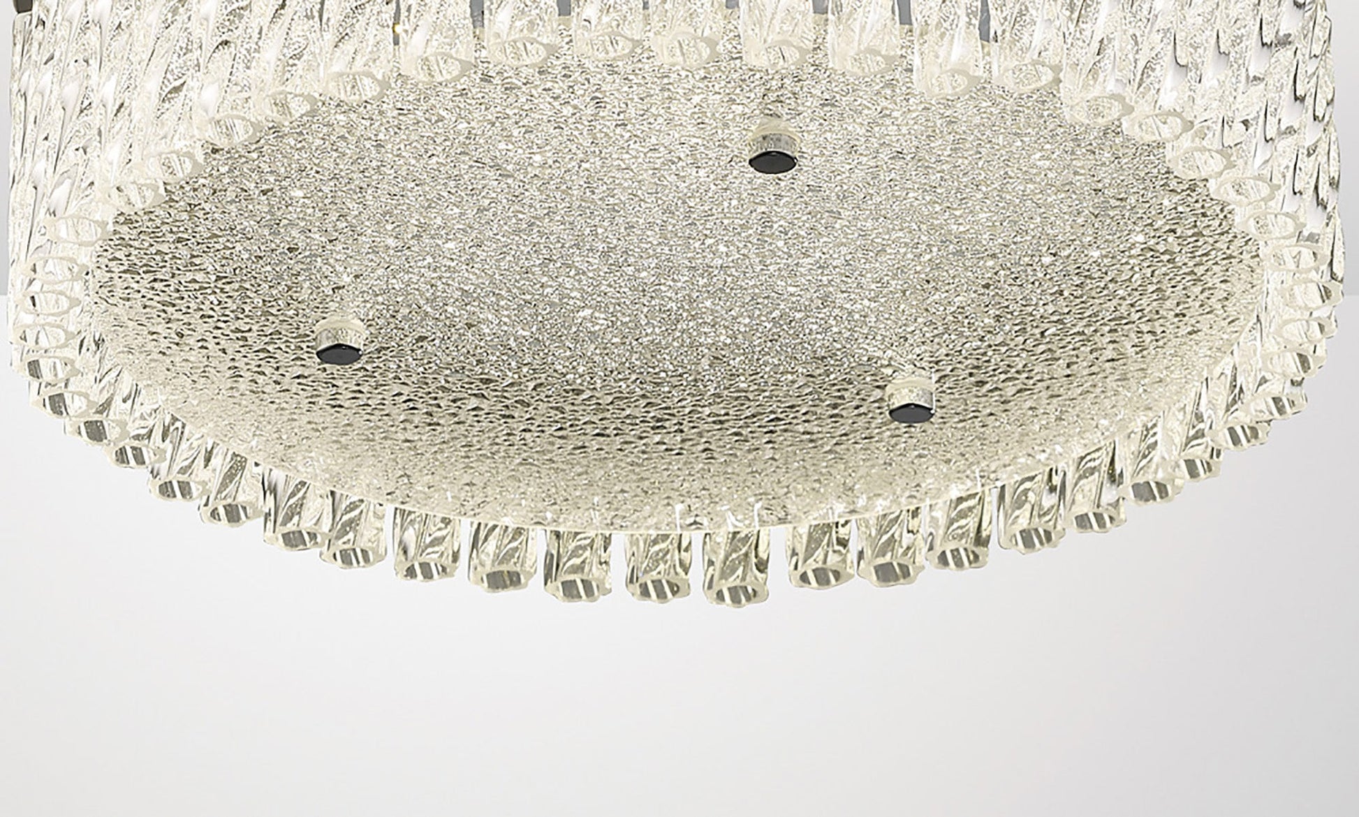 The hollow twisted glass rods are used to frame the crystallized pattern glass which softly diffuses the 4200K LED light to create an appealing visual effect. Effective, efficient and functional, these lights are ideal for any low ceiling.