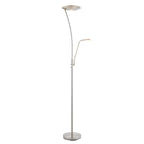 An understated LED interior mother and child floor lamp, with white frosted diffusers. Featuring an adjustable reading lamp to direct light as required, the main up-light and reading lamp can be lit independently or together.