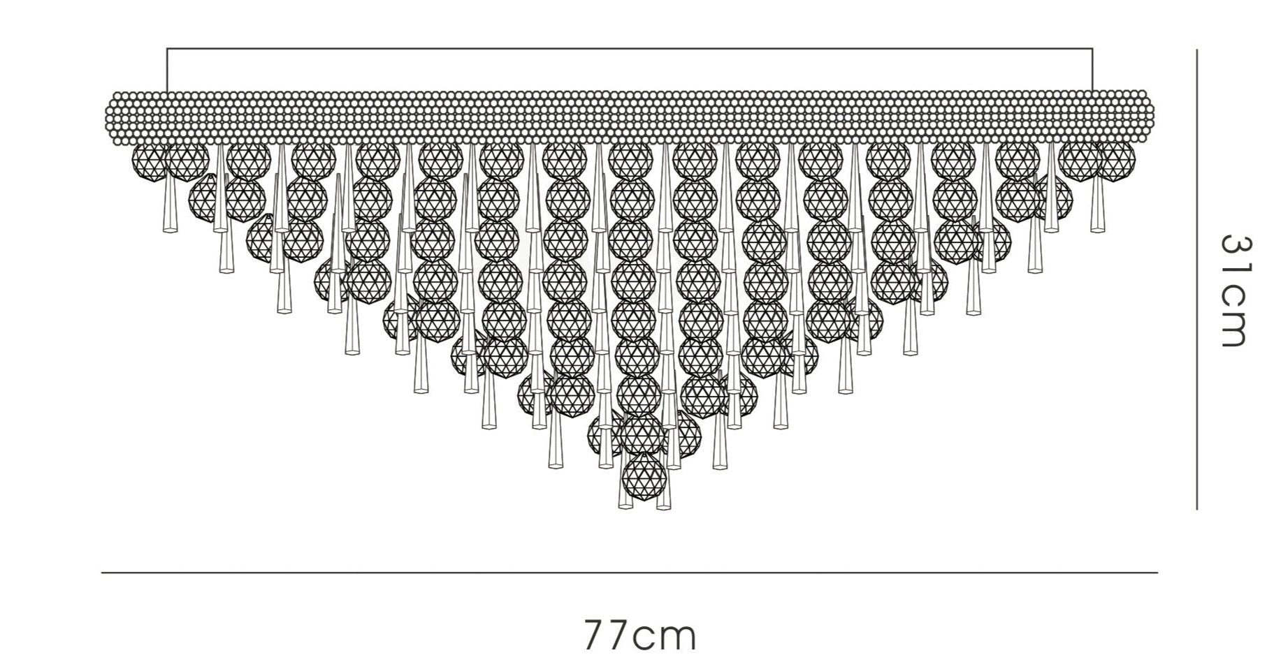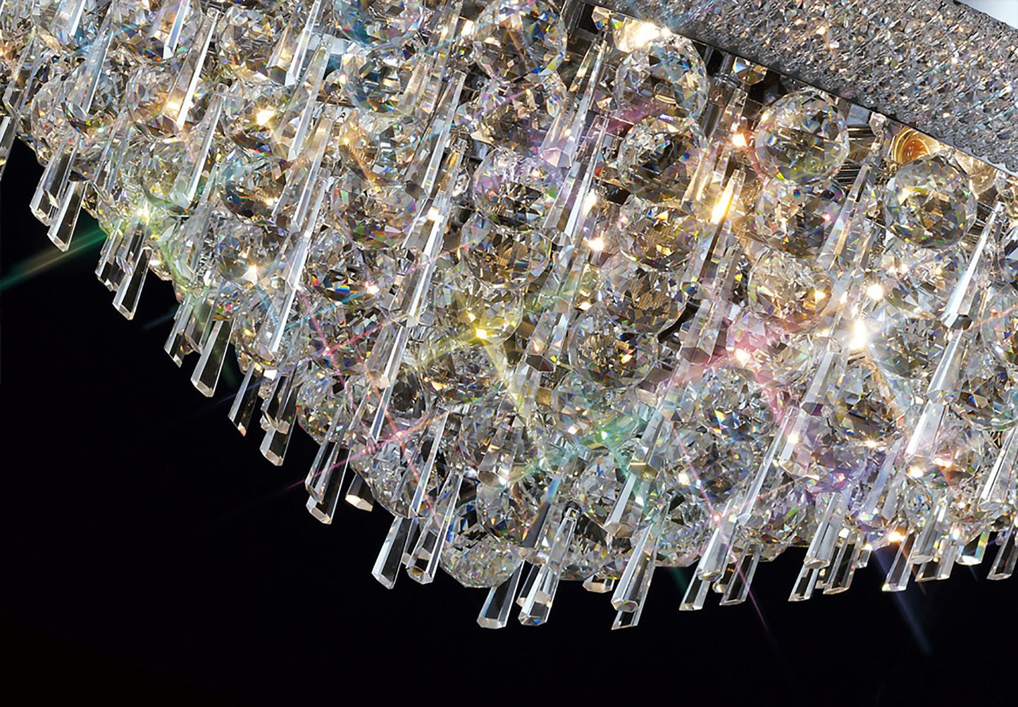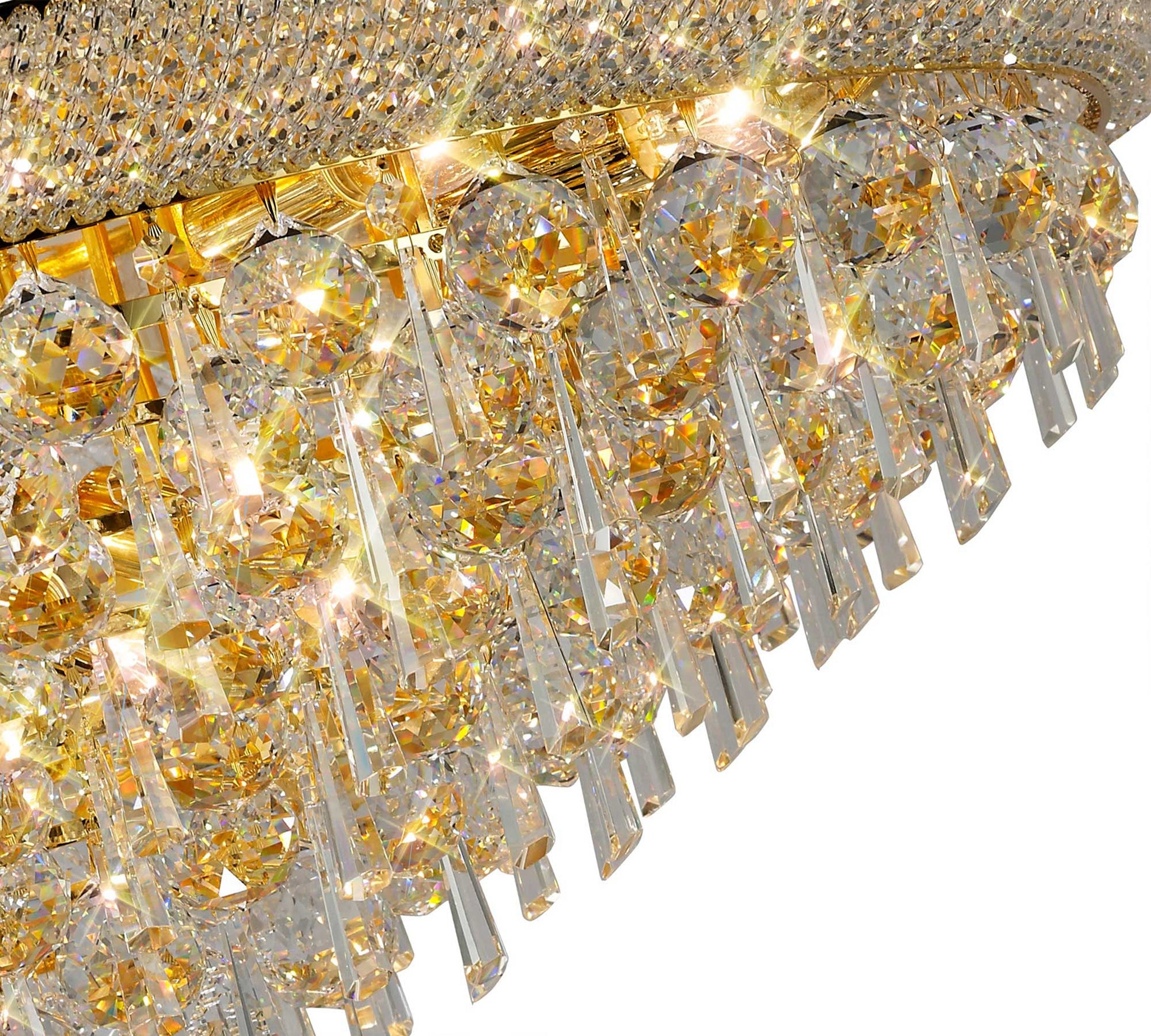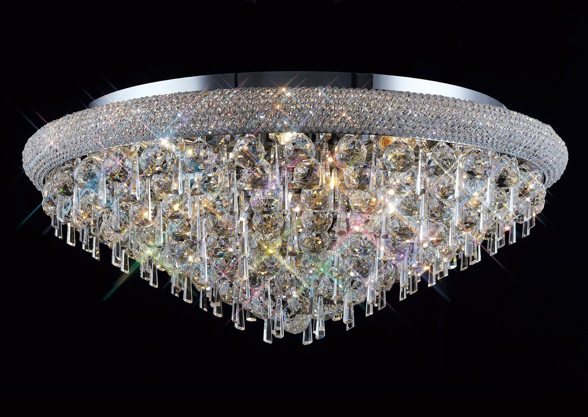 A spectacularly, dazzling, awe inspiring range filled with an abundance of Asfour crystal available in a Polished Chrome and Gold finish. Each fitting utilises a combination of 40mm clear spheres and 62mm hexagonal drops.
