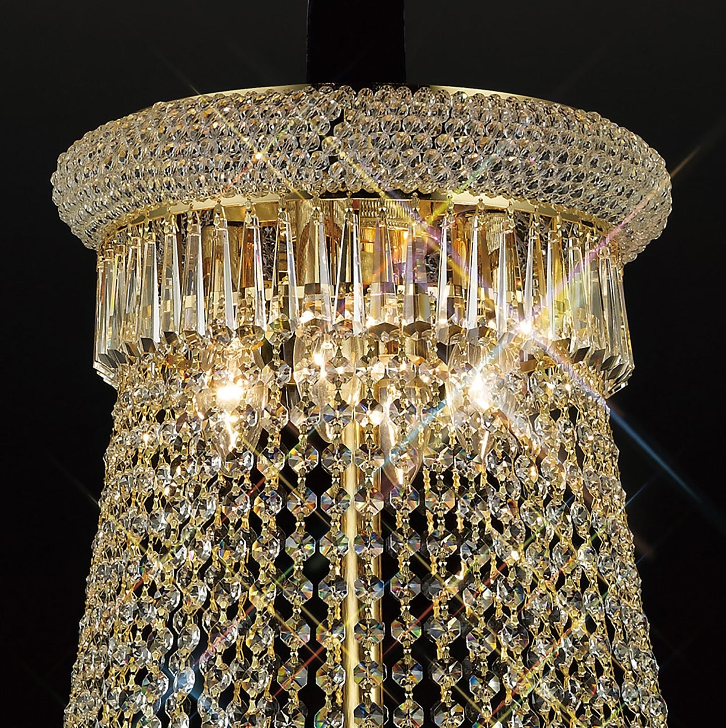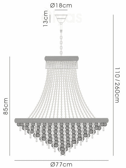 A spectacularly, dazzling, awe inspiring range filled with an abundance of Asfour crystal available in a Polished Chrome and Gold finish. Each fitting utilises a combination of 40mm clear spheres and 62mm hexagonal drops.