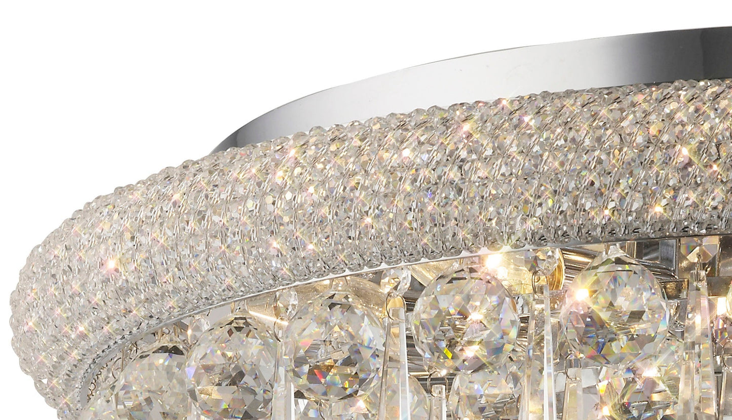A spectacularly, dazzling, awe inspiring range filled with an abundance of Asfour crystal available in a Polished Chrome and Gold finish. Each fitting utilises a combination of 40mm clear spheres and 62mm hexagonal drops.