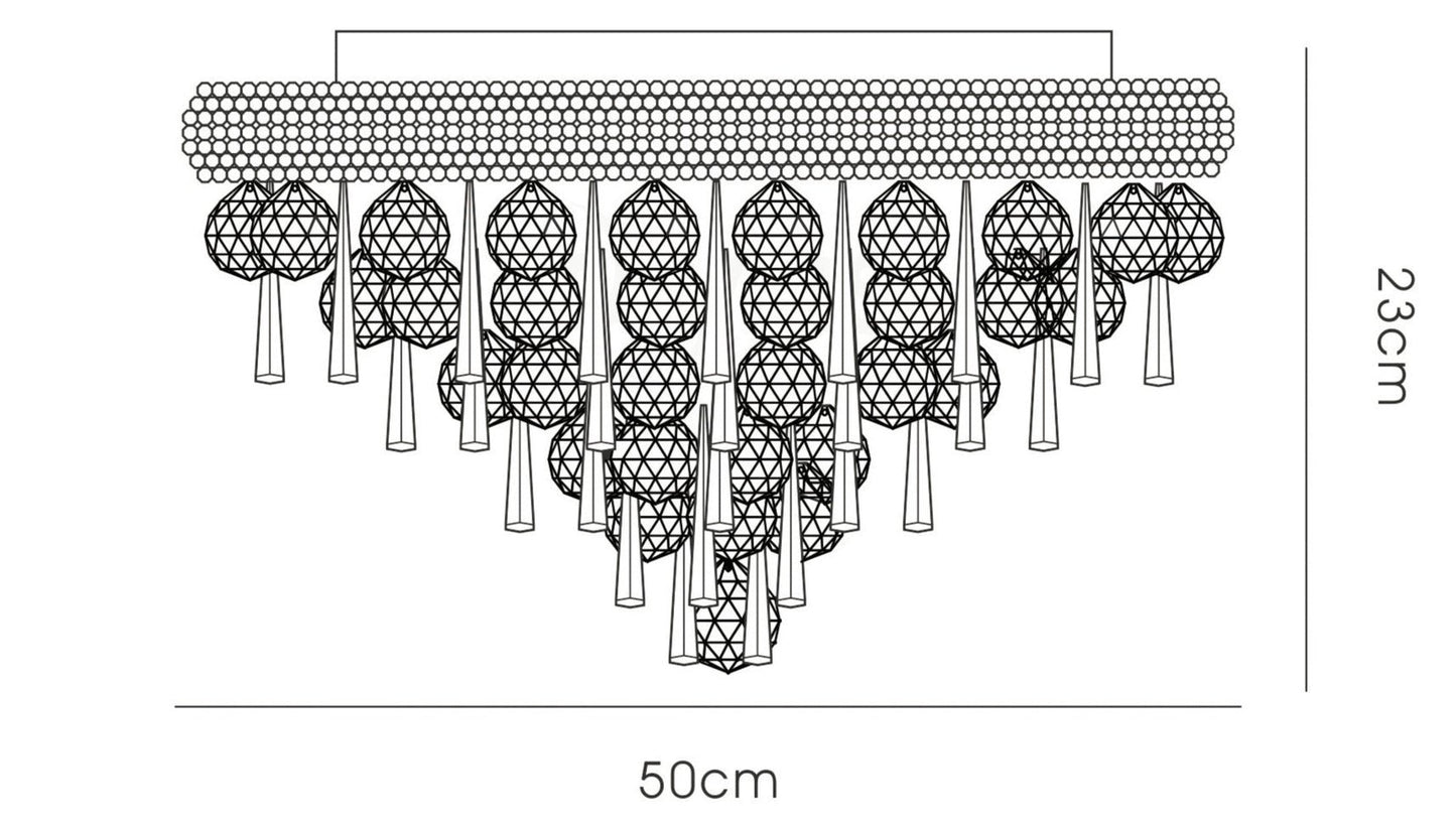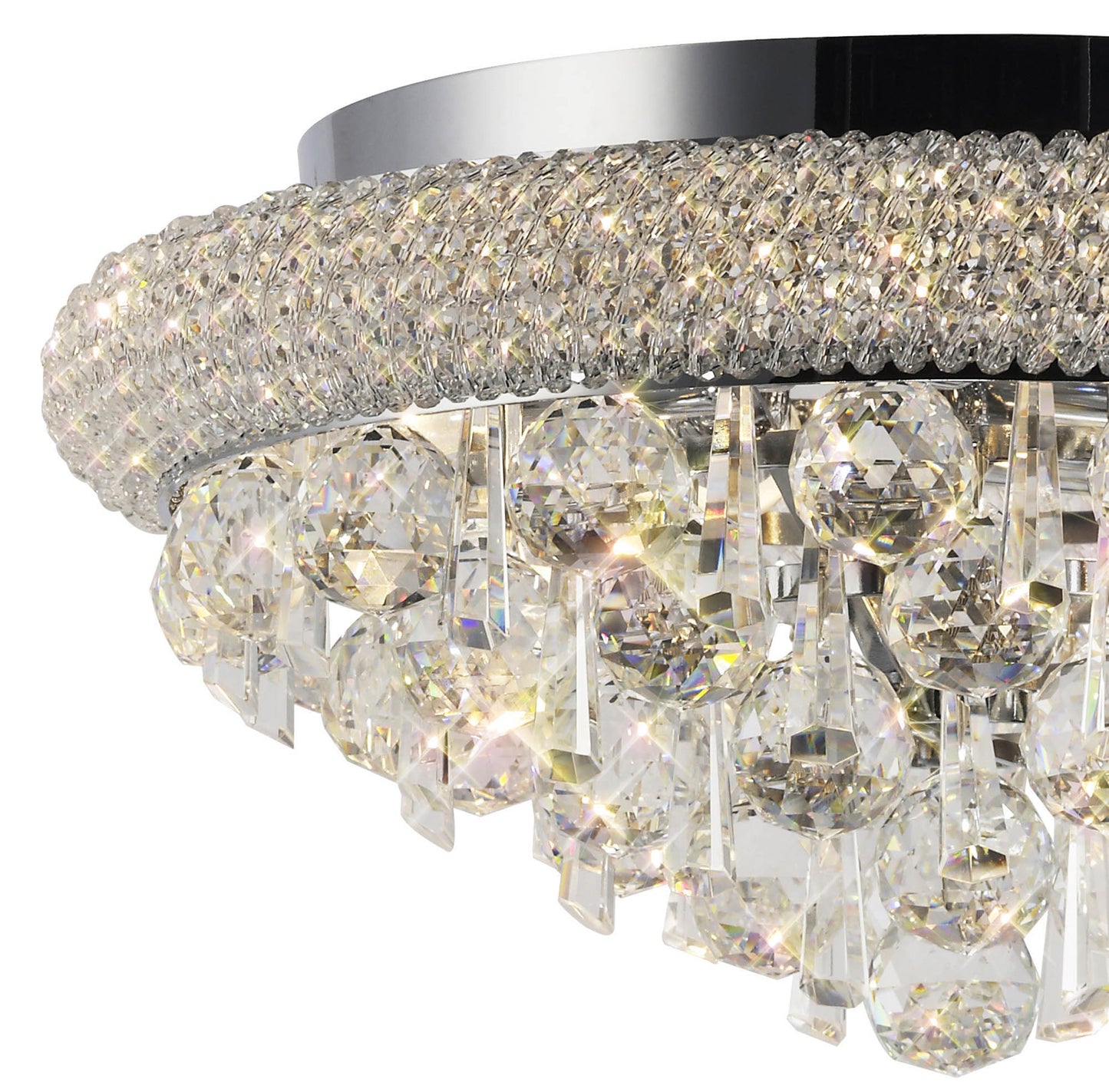 A spectacularly, dazzling, awe inspiring range filled with an abundance of Asfour crystal available in a Polished Chrome and Gold finish. Each fitting utilises a combination of 40mm clear spheres and 62mm hexagonal drops.