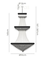 Descending tiers increasing in size flow together with cascading strands of crystal beads on the pendants. Every item also features a substantial curved ring of closely packed Asfour crystal beads.