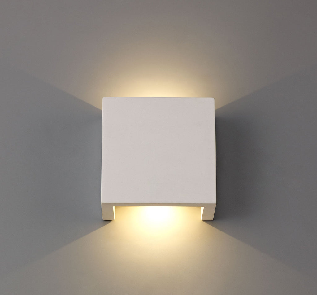 This wide collection of fittings span from a GU10 cone pendant to cube integral LED wall lamp. The unconventional variation of different types of wall lamps and pendants ensures there is a suitable lighting solutions for your needs. The most outstanding feature is that all items within the Alina range are formed from a white gypsum which is paintable to fully adapt each item to your own personal tastes and creative design.
