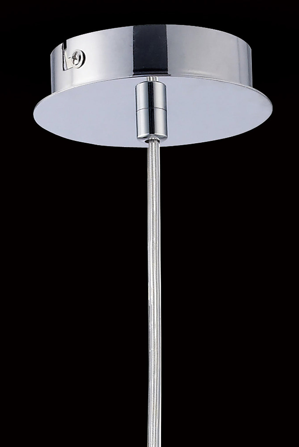 An elegant suite of pendants with a complimenting wall lamp. The substantial piece of faceted crystal is amazing and subsequently decorated with three elegantly shaped stainless steel metal.