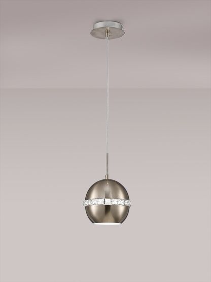Andrea is an elegant set of pendant lights that are glamorous and classic, the dome shape is divided by a ribbon of crystal around the middle that adds a subtle sparkle.