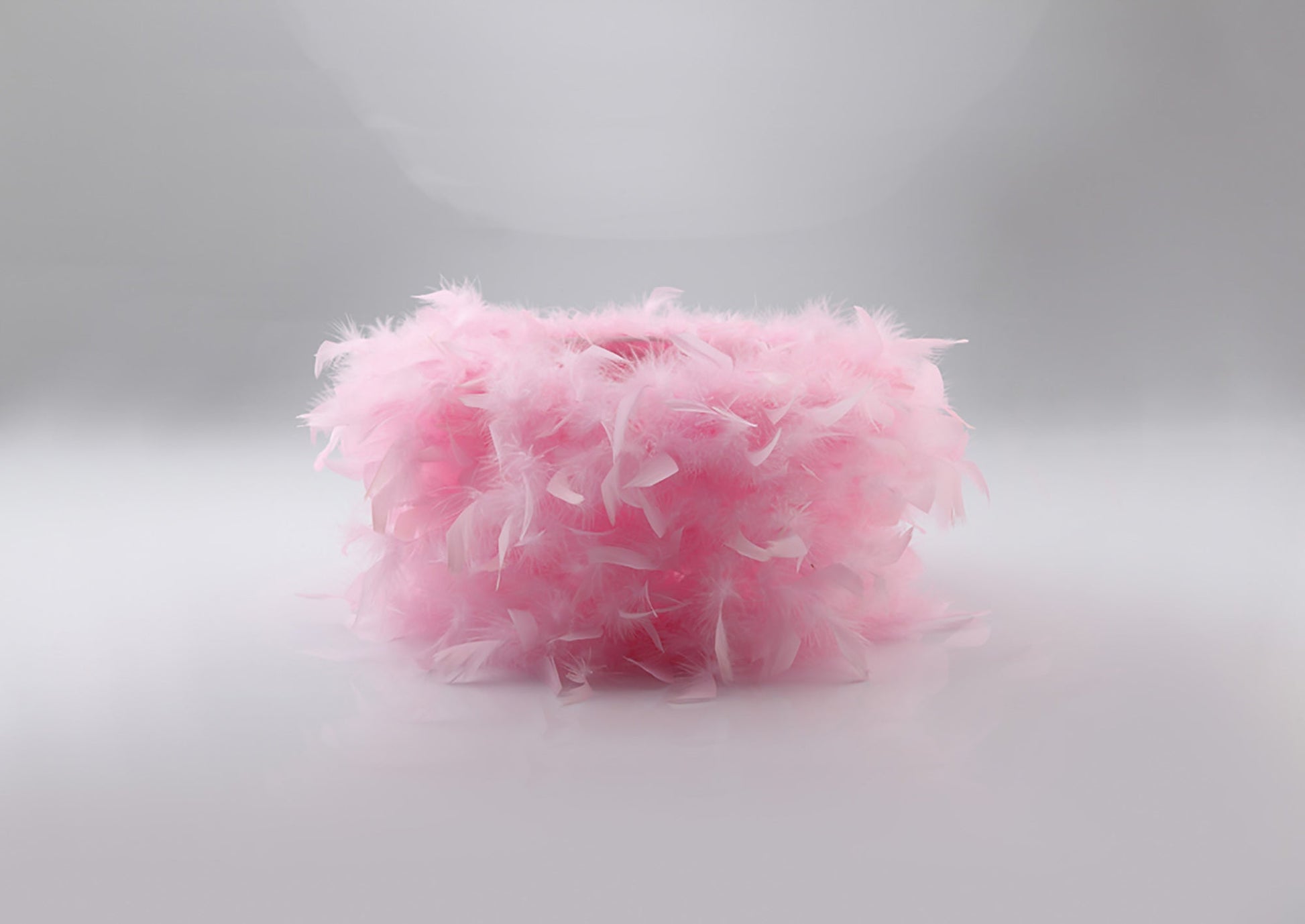 Constructed from a clear vinyl drum shade the dyed feathers are attached to the base shade in abundance. The sheer quantity of feathers used is a statement in itself and ensures the shades are exquisite.