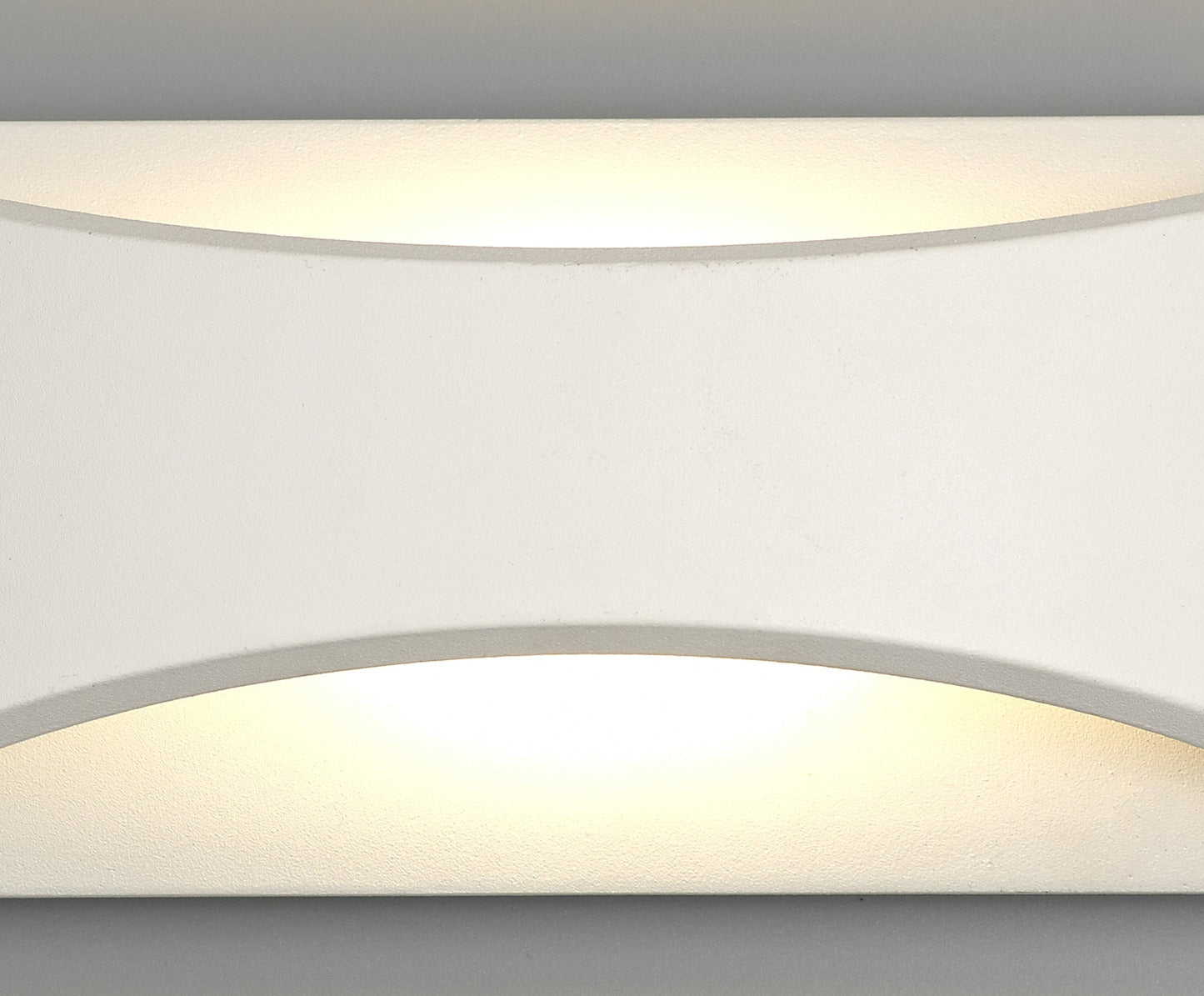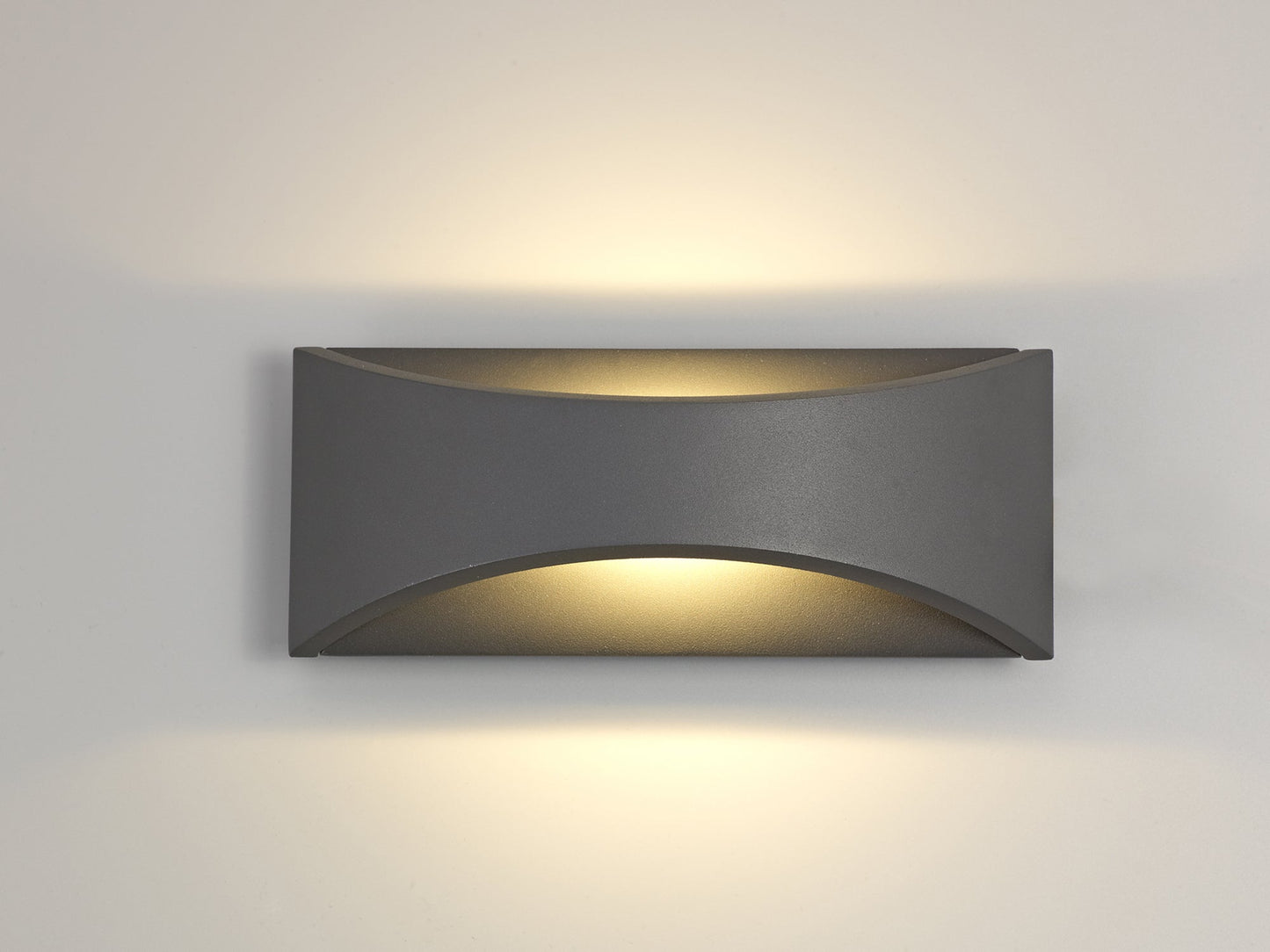 Aryana's unique and modern style utilises the maximum output from the 6W integral 3000K LEDs. The long rectangular shape curving away from the wall opens along the widest sides producing two light directions. The sand white and anthracite colour finishes give a slightly coarse textured effect more naturally suited for an outdoor IP54 rated collection. Aryana offers an attractive feature and energy saving lighting solution in