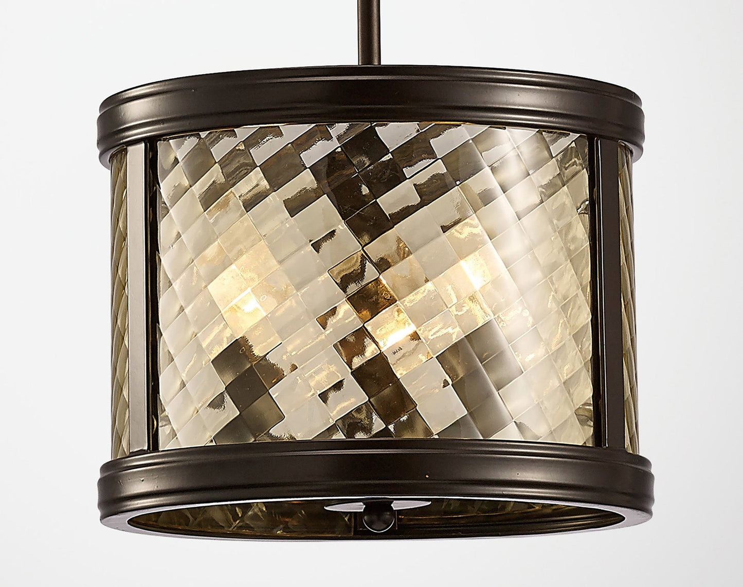 Asia is a splendid light that definitely has the wow factor. Its frame is finished in oiled bronze, creating a rich and regal light suitable for halls and foyers. The 4 or 8 light pendant is perfect for vaulted ceilings while the semi-ceiling 3 light is a great option for rooms with less height. The square patterened glass diffuses the light slightly to give off a warm glow output.