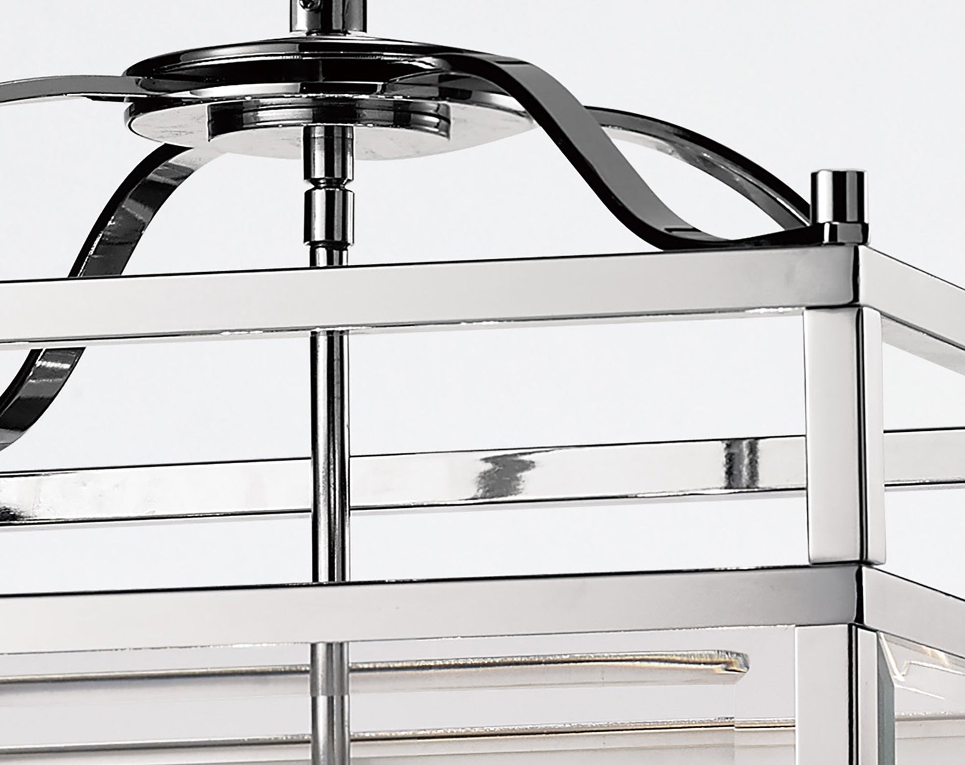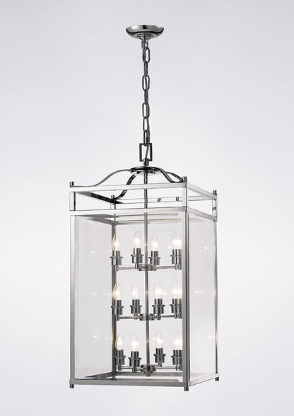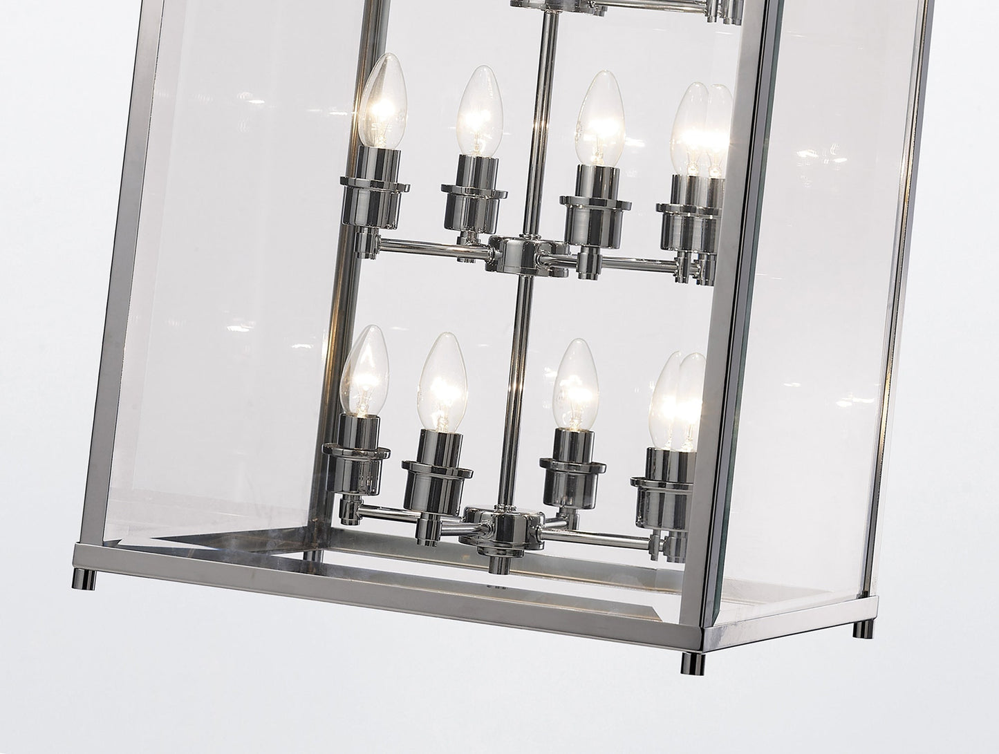 A comprehensive range of square glass lanterns with a designer edge. The substantial glass panels are bevelled on the edges and the designers ensured the lamp cluster have intricate detail to make these an opulent product. What is often know as a classical product has been given a contemporary make over with a Polished Chrome finish. Antique Brass version are also available for a more traditional environment.