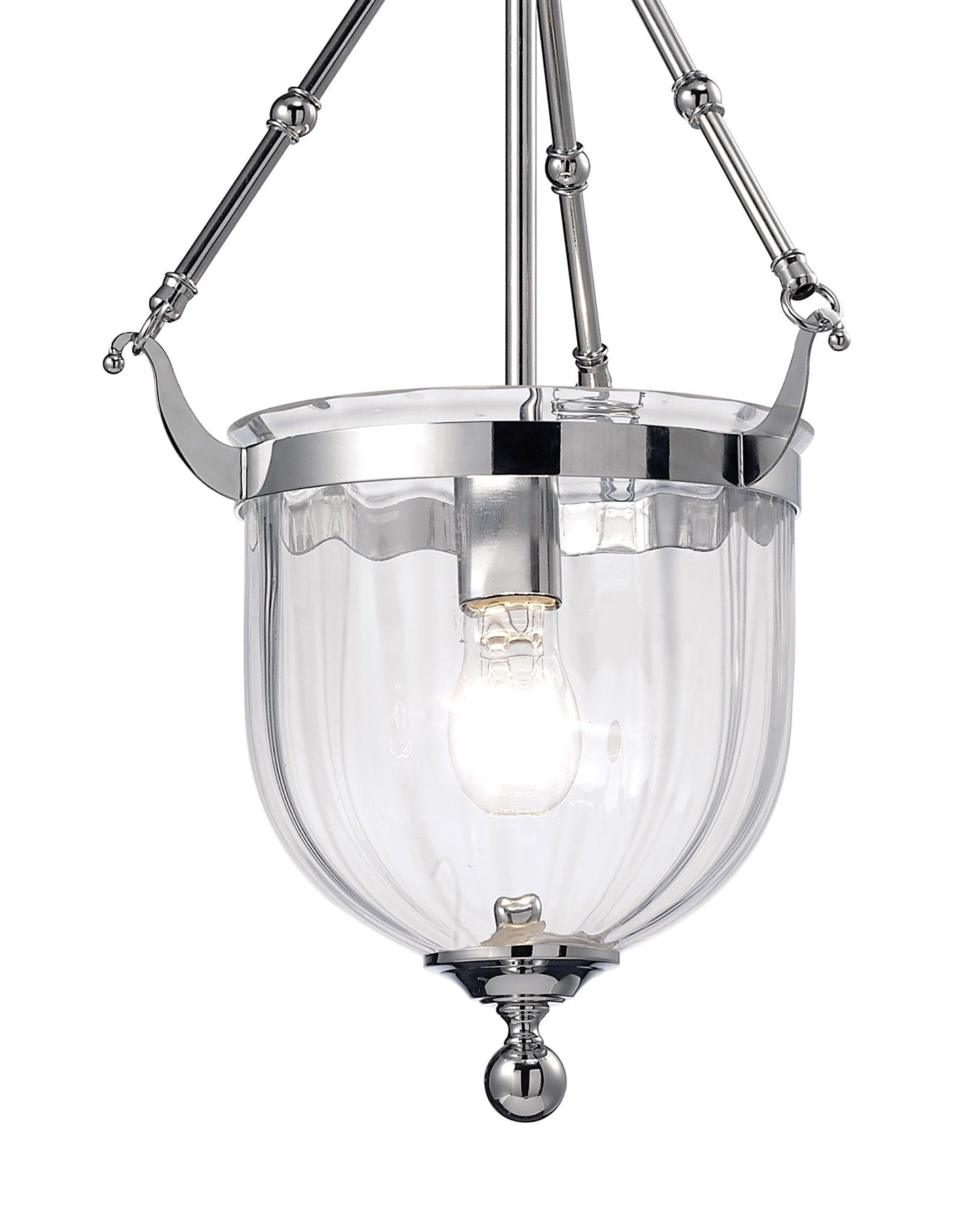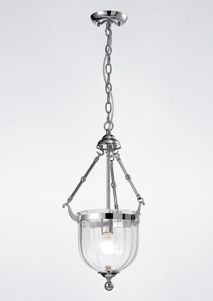 A substantial hand made glass bowl with a slight rippled effect is the superior attraction of this product range. The rippled glass elegantly catches the light and creates a perfect illumination. Artistic framework has been created to compliment the glass resulting in a graceful range of pendants. All products are available in Polished Chrome or Antique Brass offering a contemporary or traditional character.