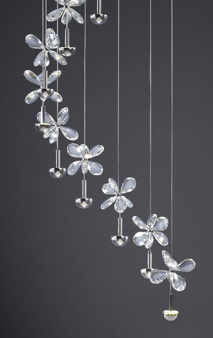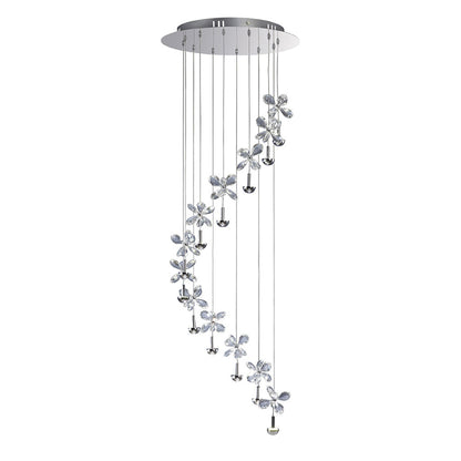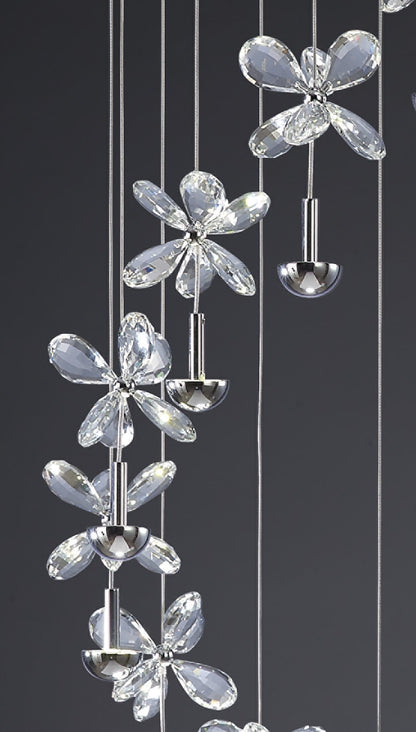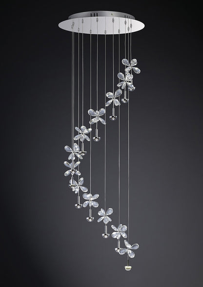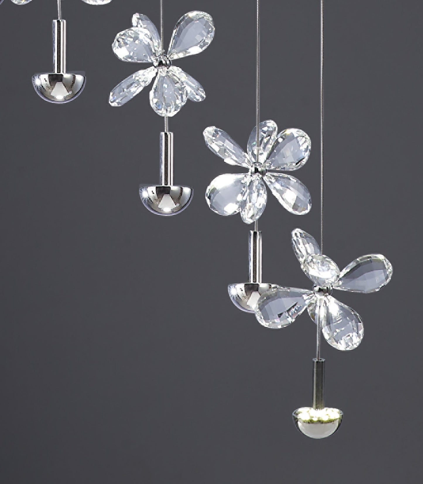 A stunning design has been created using the latest LED technology resulting in this magnificent collection. Contra to traditional methods of illumination, up-light projection has been used to enhance the illumination of the unique and beautiful crystal petals, which creates an amazing effect throughout the design. The masterpiece in the collection is the 28 light pendant which is simply stunning. There are also spiral versions which would be suited for staircase locations. The in-direct light simply leaves the observer bewildered as to how the dazzling effect is created.
