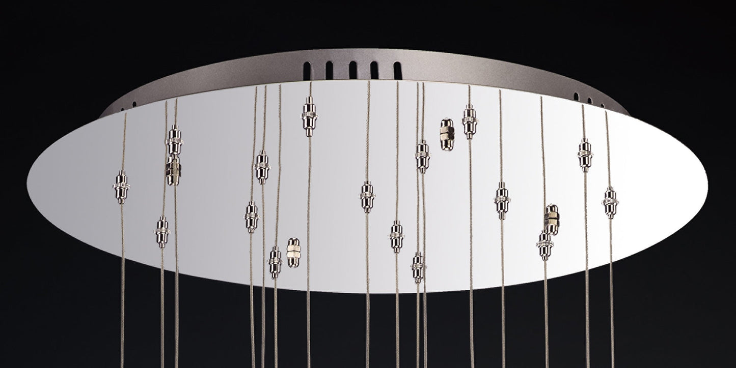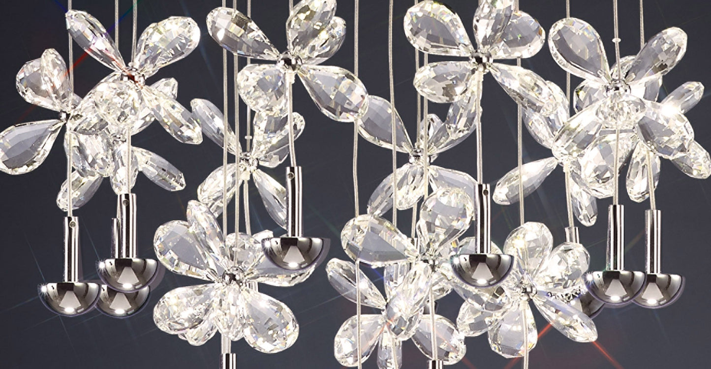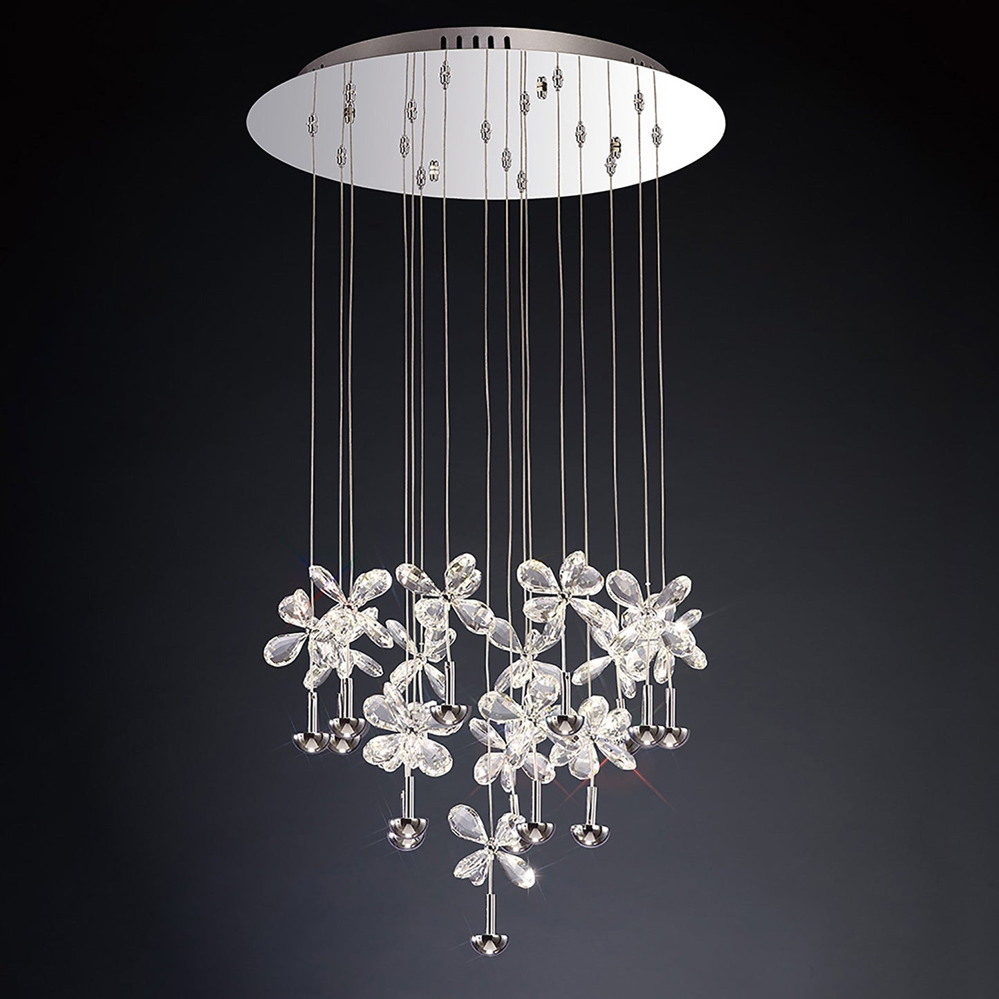 A stunning design has been created using the latest LED technology resulting in this magnificent collection. Contra to traditional methods of illumination, up-light projection has been used to enhance the illumination of the unique and beautiful crystal petals, which creates an amazing effect throughout the design. The masterpiece in the collection is the 28 light pendant which is simply stunning. There are also spiral versions which would be suited for staircase locations. The in-direct light simply leaves the observer bewildered as to how the dazzling effect is created.