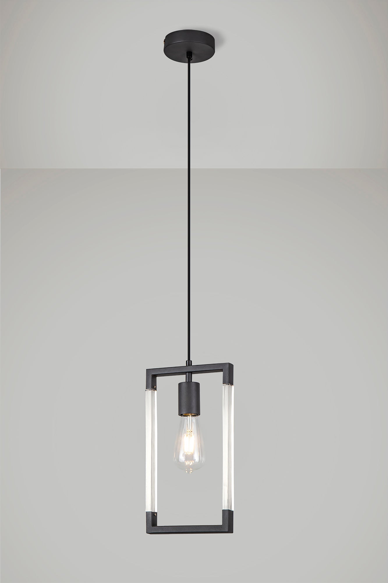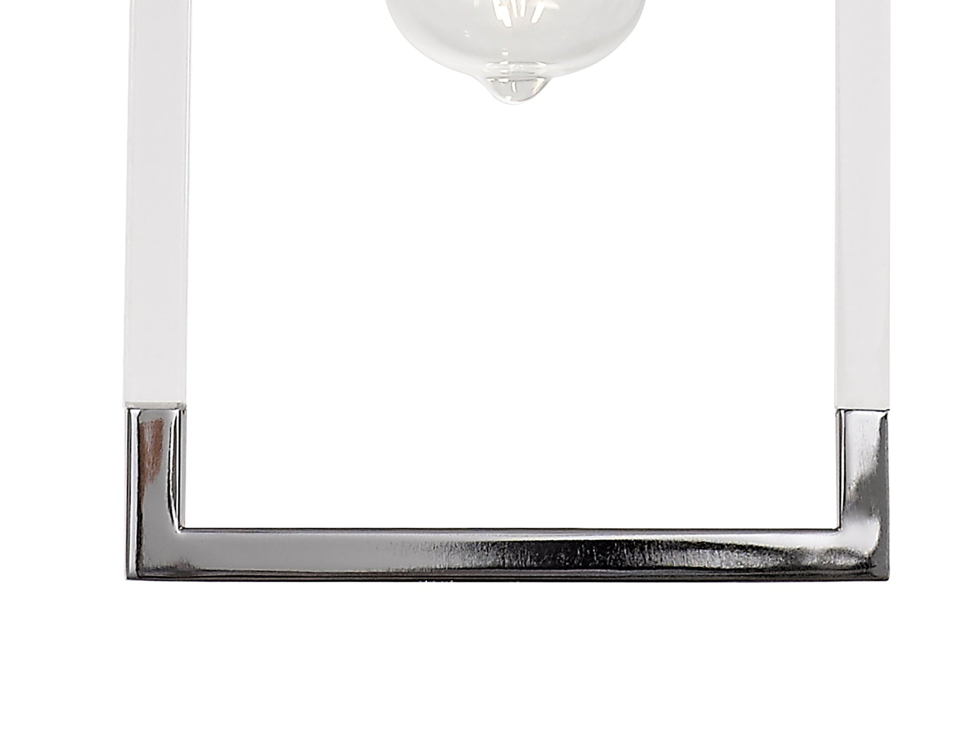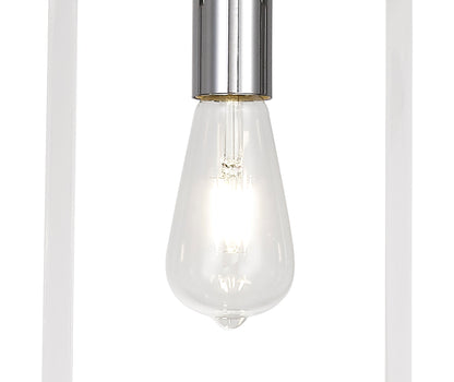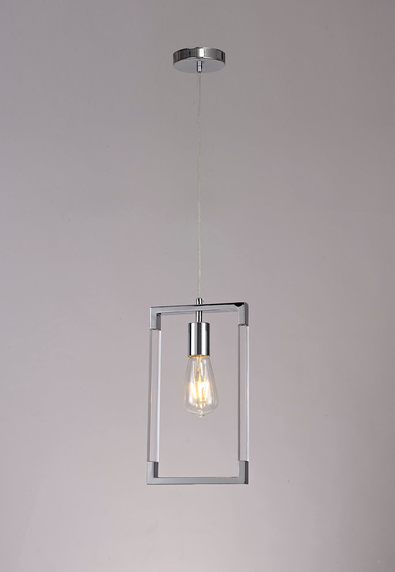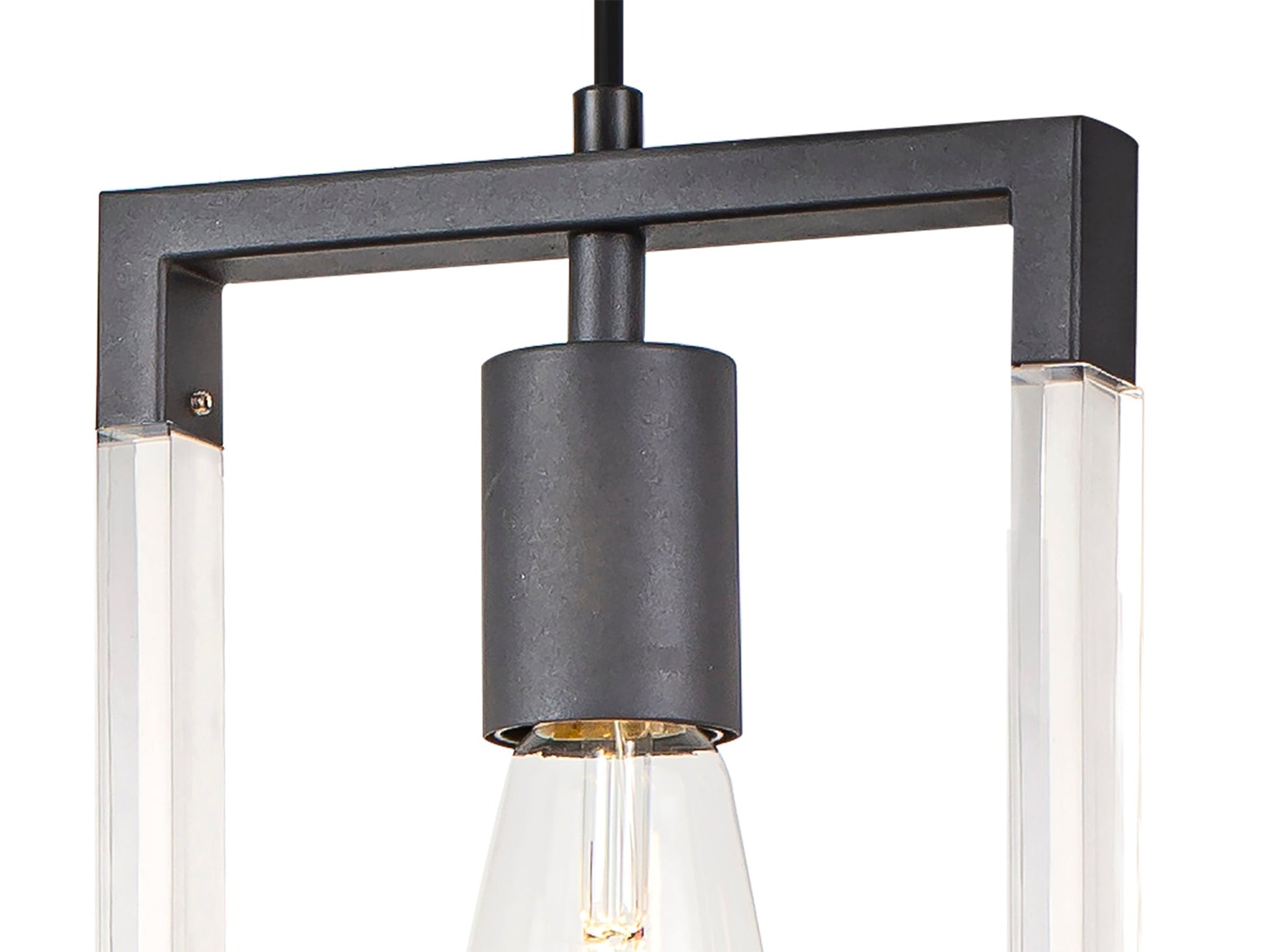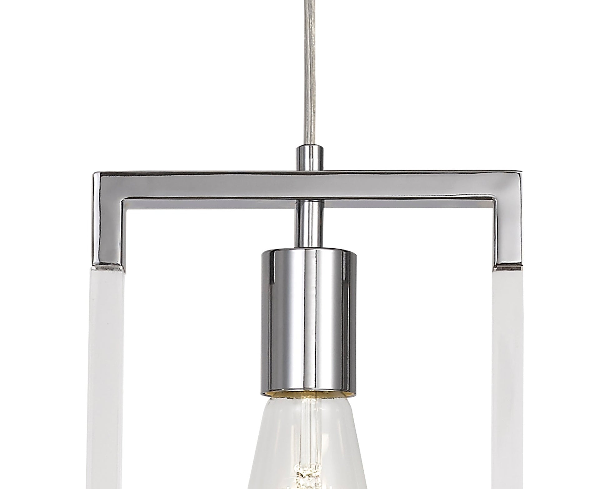 Each E27 lampholder is framed by long clear acrylic pieces on the sides and smaller lengths of metal framework along the top and bottom.