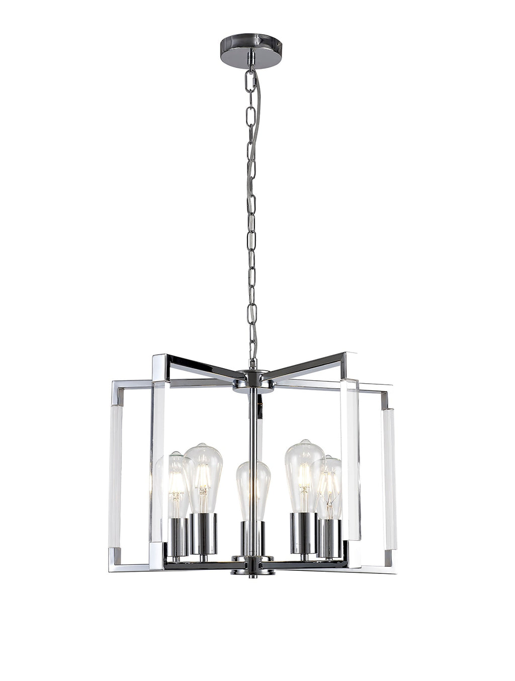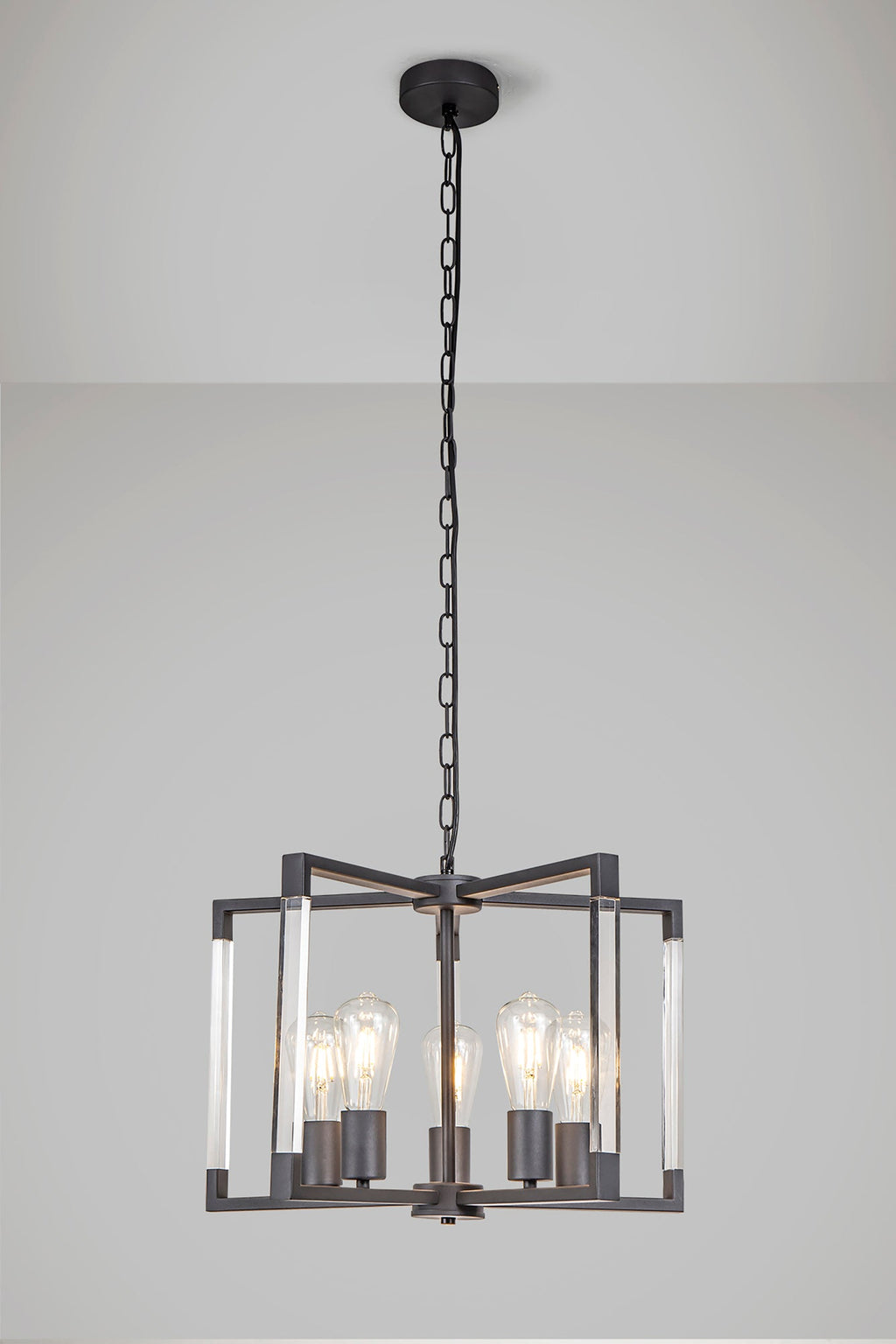 Canto customises an original composition of materials to produce a completely unique range within the Diyas brand. Each E27 lampholder is framed by long clear acrylic pieces on the sides and smaller lengths of metal framework along the top and bottom. The open spaces allow for an optimum dispersal of light whilst the acrylic components create a more muted halo of illumination. A Graphite finish makes the modern concept of this design more contemporary to better suit a wider variety of decorative themes.