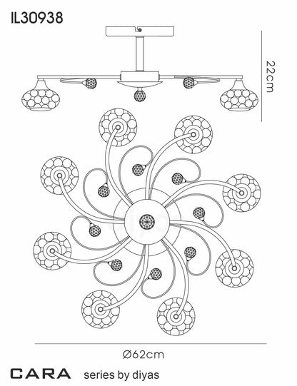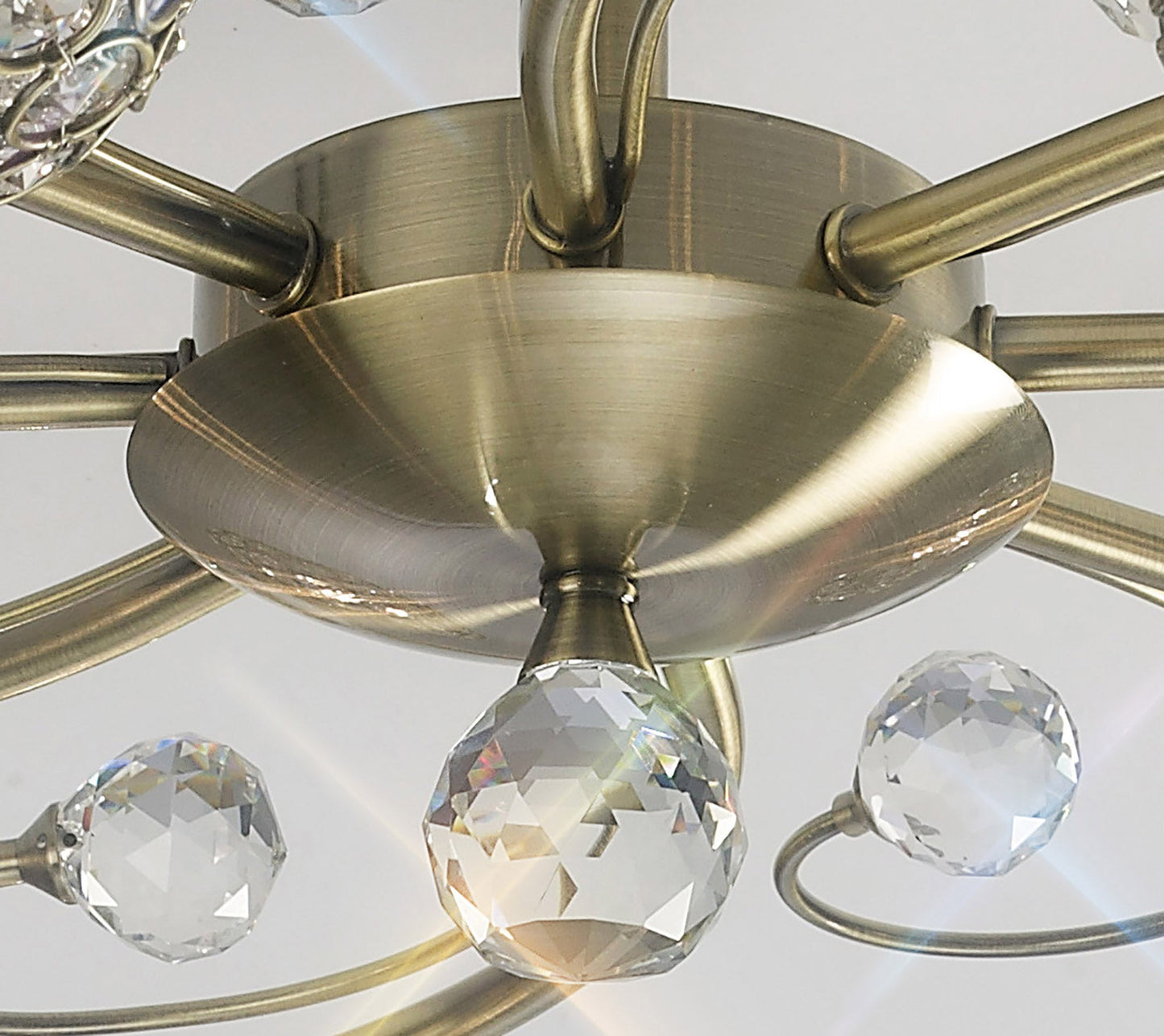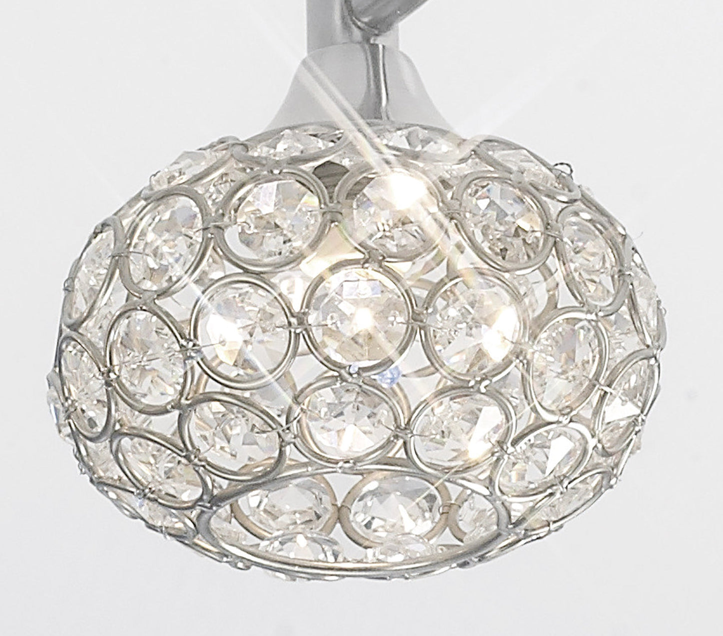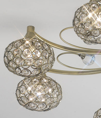 This suite of products has been carefully designed with low ceilings in mind. The matt finish of Satin Nickel or Antique Brass with the sparkle of the clear crystal is an impressive combination. The hand crafted shades are full of octagon crystal and the additional crystal spheres within the fixtures create significant impact. The 8 light ceiling light at a diameter of 62cm is exceptional.