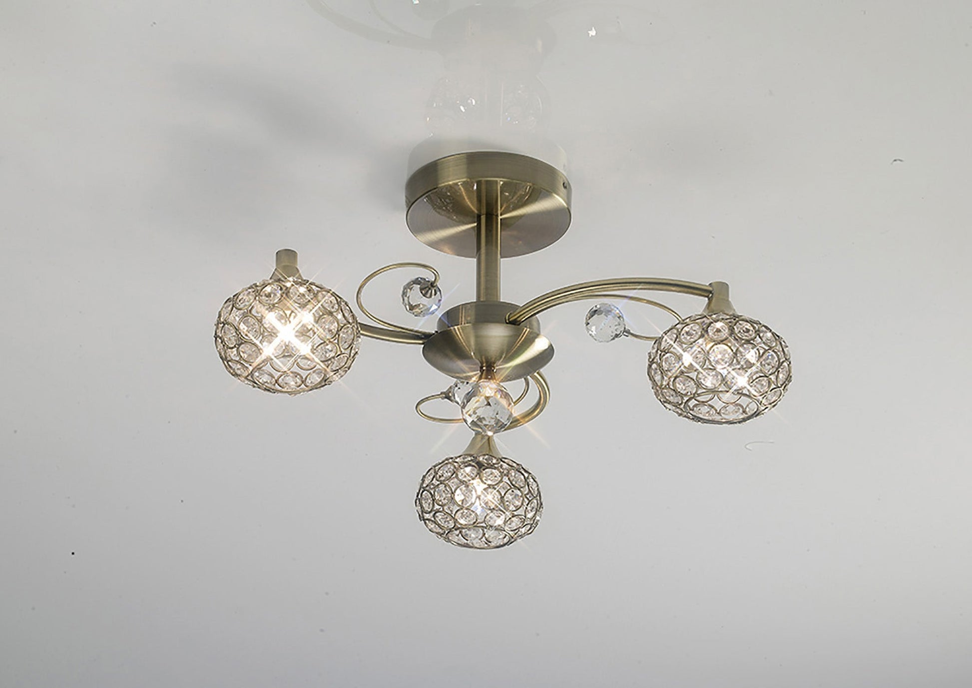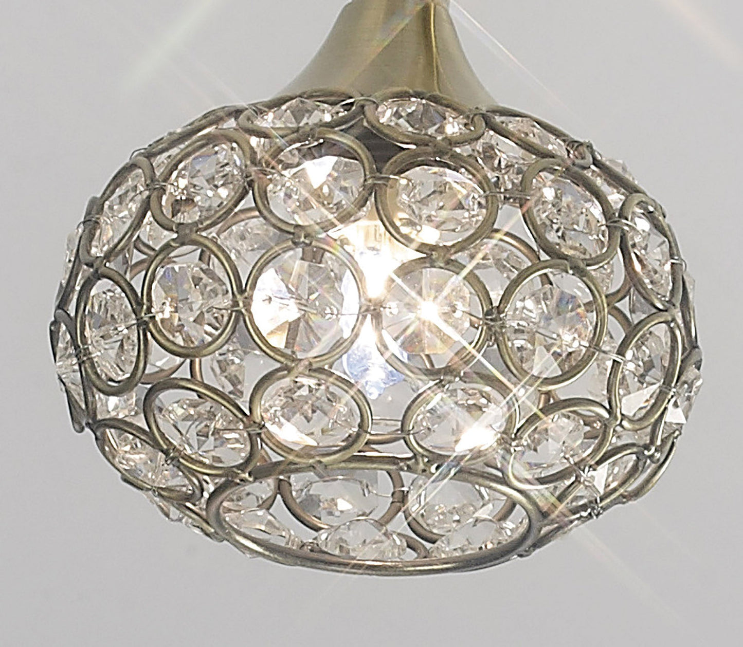 This suite of products has been carefully designed with low ceilings in mind. The matt finish of Satin Nickel or Antique Brass with the sparkle of the clear crystal is an impressive combination. The hand crafted shades are full of octagon crystal and the additional crystal spheres within the fixtures create significant impact. The 8 light ceiling light at a diameter of 62cm is exceptional.