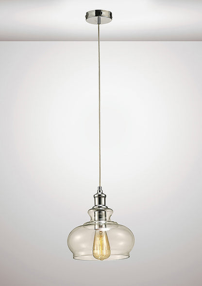 Carla is a single Polished Chrome pendant with clear flex suspending an E27 lampholder. The lampholder hosts a fixed clear dome shade that draws its design from vintage glass lampshades.