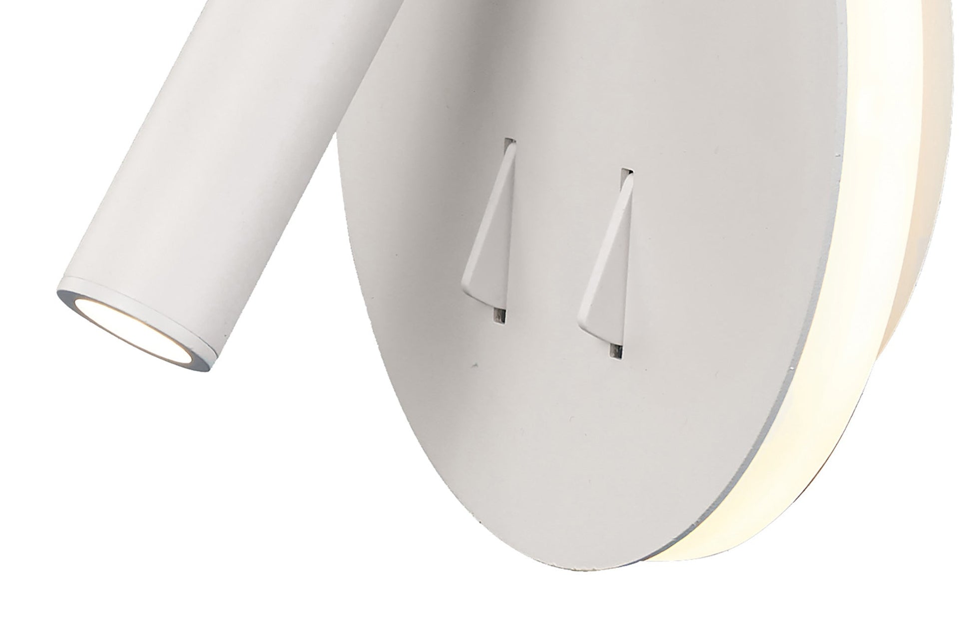 Each LED function can be controlled with its own individual switch located on the front of the backplate. Both the plate and the LED arm are formed with round shapes.