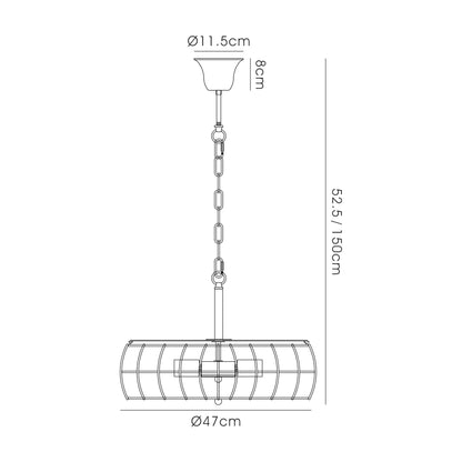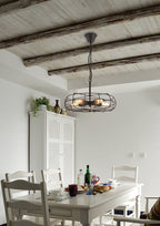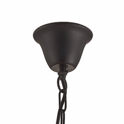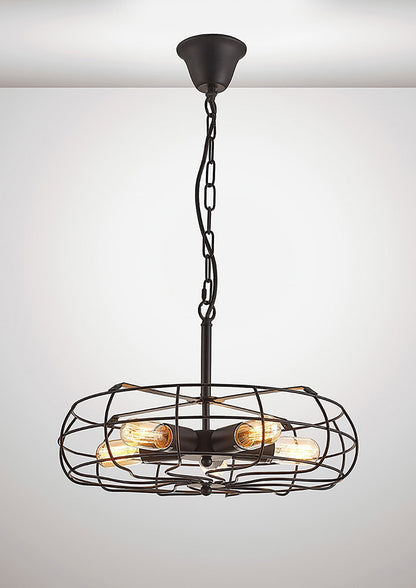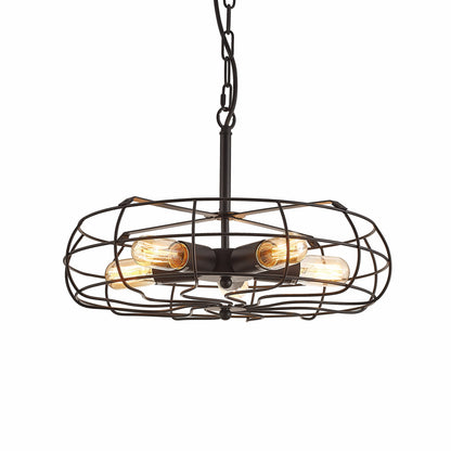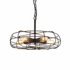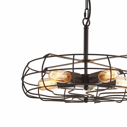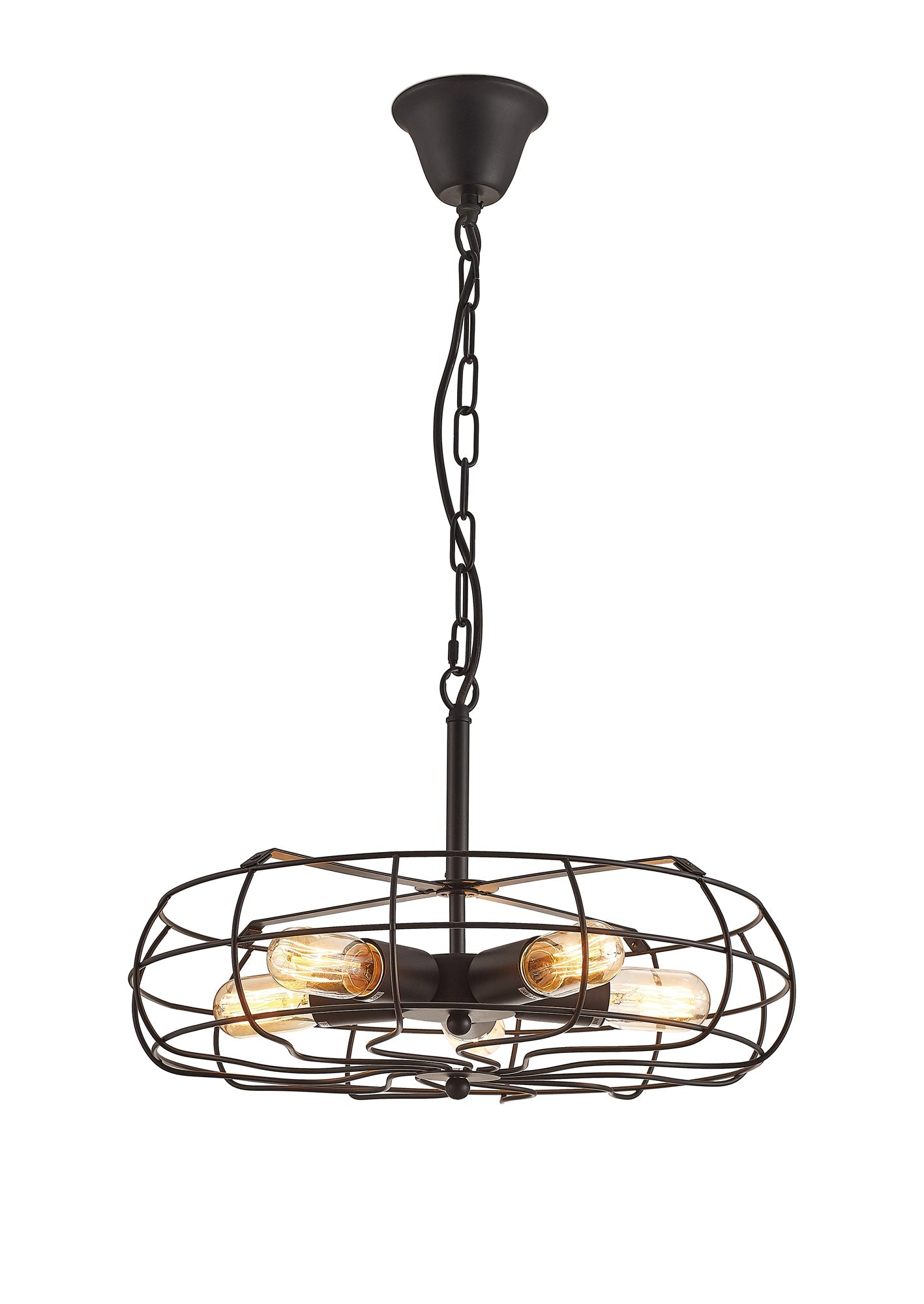 The black finish framework and positioning of the E27 lampholers are manipulated to reflect an antique fan illusion.