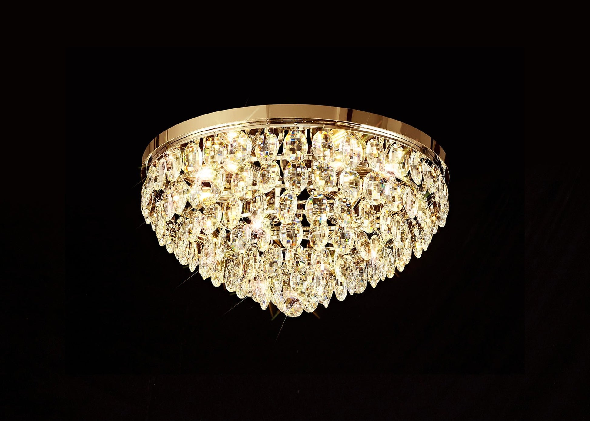 Coniston is the epitome of a stunning crystal collection. Staying true to the high quality and distinctive designs provided by Diyas lighting, this range hosts a substantial abundance of clear crystal pieces. Delicately displayed in a tiered cascading form to outline a striking feature. Available in 3 colour finishes with various flush and pendant sizes including a complementing wall lamp, Coniston's engaging sophistication can be displayed within a wide variation of settings