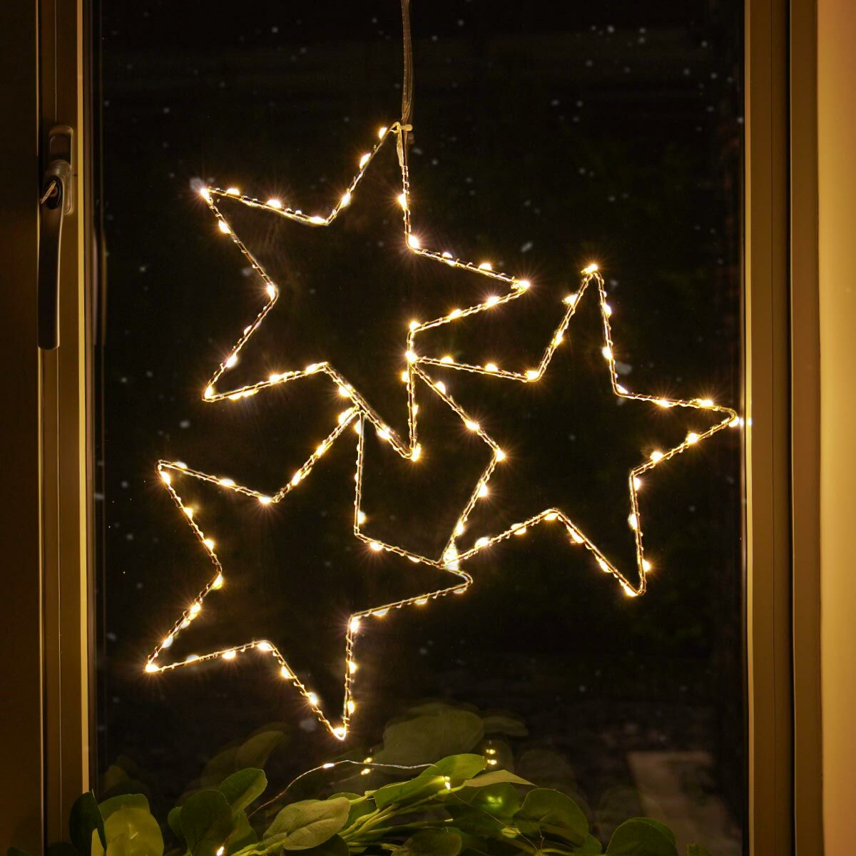Create a supernova in and around your home this Christmas with this simply stunning trio of stars. The 3 2D conjoined stars are made from a sturdy black metal frame and come with 90 warm white LEDs perched along a silver wire. The generous 1m clear lead cable length from plug to bulb makes it easy to adorn your home in dazzling starlight year after year, whether it be indoors or out.