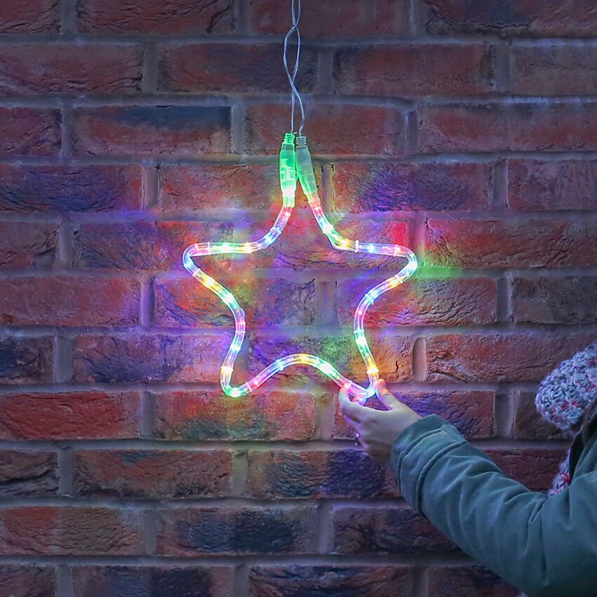 This low voltage rope light star motif is part of our cutting edge ConnectGo range, which boasts impressive versatility in its interchangeable power sources. This multi-power source silhouette, with 1m clear lead cable, can be powered by either mains, using the latest digital 31V transformer, or by battery when mains power is not available.