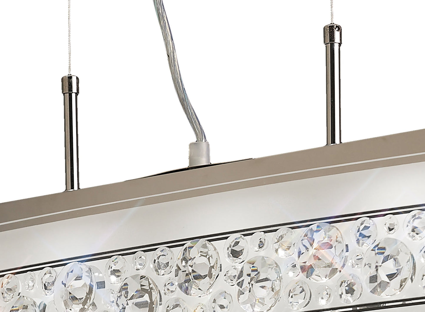 A range created by passionate craftsmanship as varying sized crystals discs have been individually attached to glass panels to create this spectacular effect. The adjustable Oval pendant boasts the highest concentration of crystal whilst the flush fitting has a unique 4 square panel combination. To complete the exquisite design the glass has also been specifically frosted to create a focal point on the crystal design.