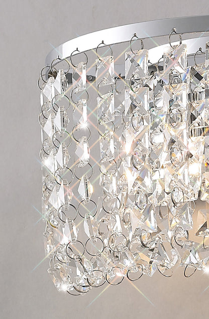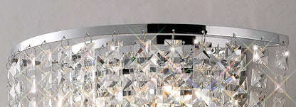A beautiful Polished Chrome flush fitting elegantly decorated with suspended chains of Asfour square crystals. The gathering of the chains towards the centre creates a remarkable sparkling effect. A beautiful matching wall lamp is also available to complete the collection.
