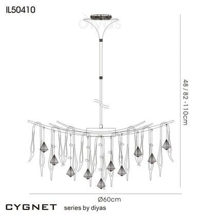 Cygnet 10 Light Artistic Crystal and Glass Droplet Design Ceiling Fitting