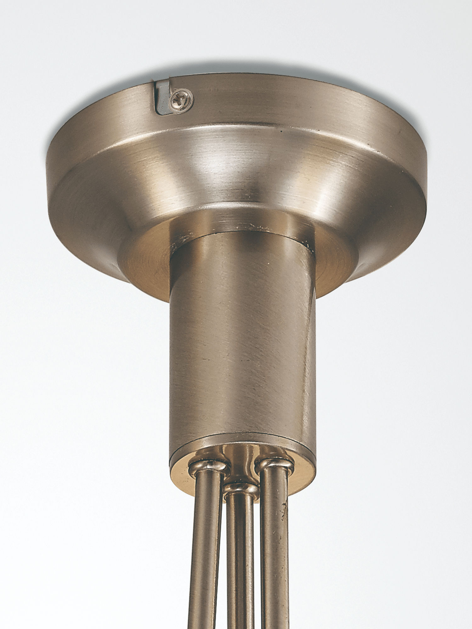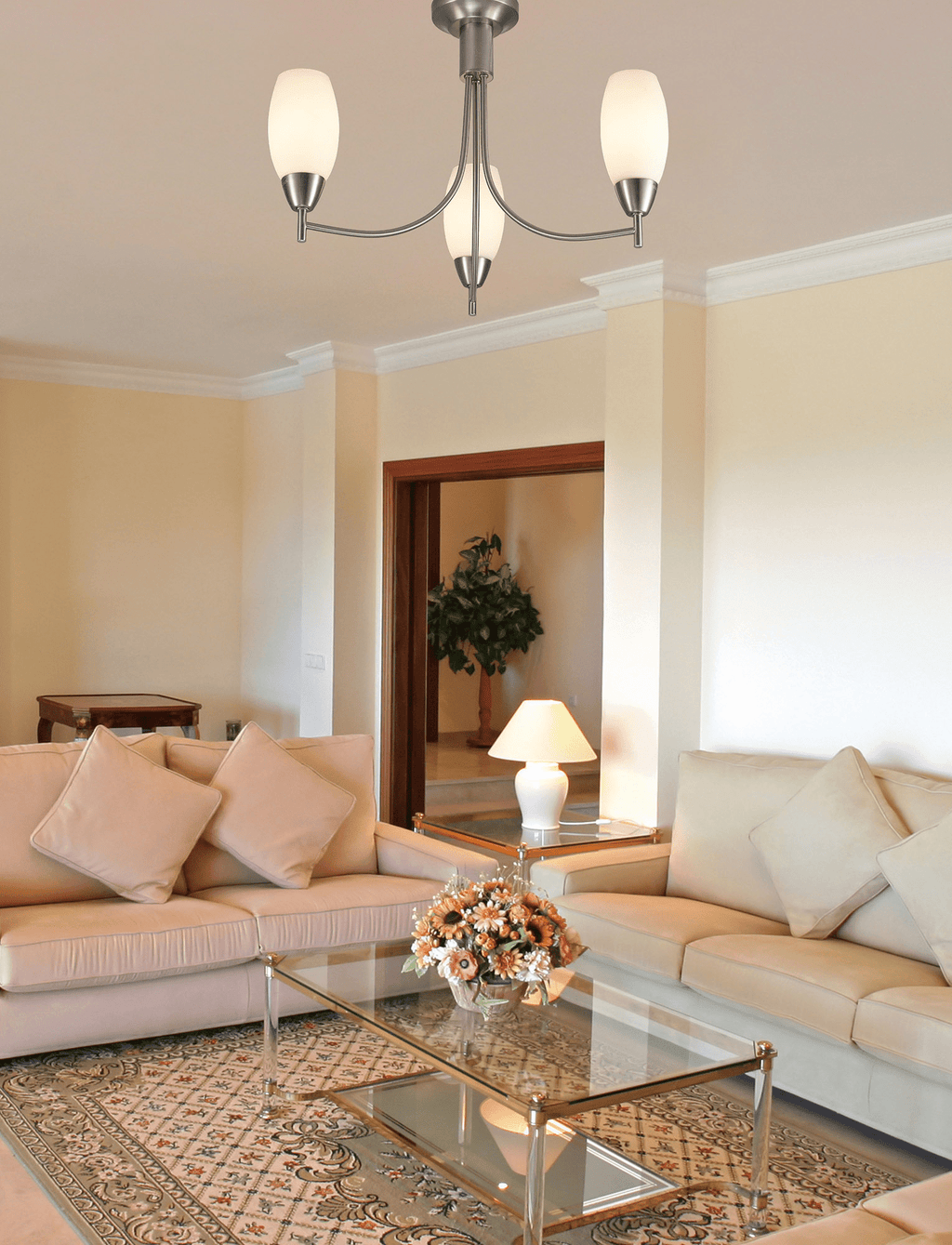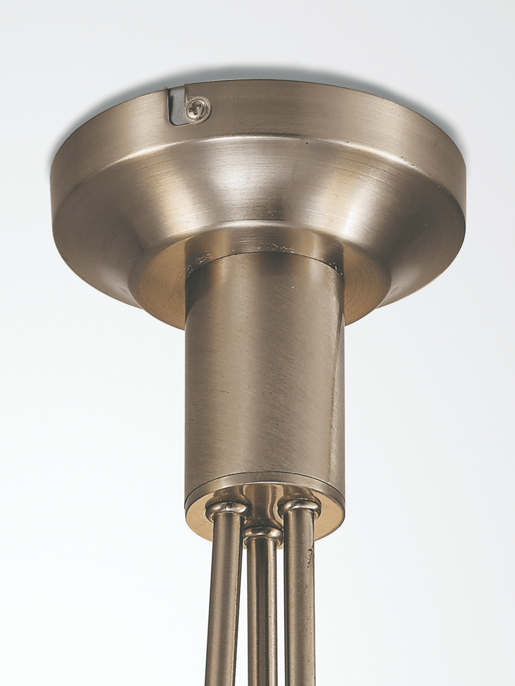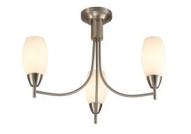 The Devon is a classic ceiling light made from a simple satin nickel framework and sleek tulip shaped glass shades.